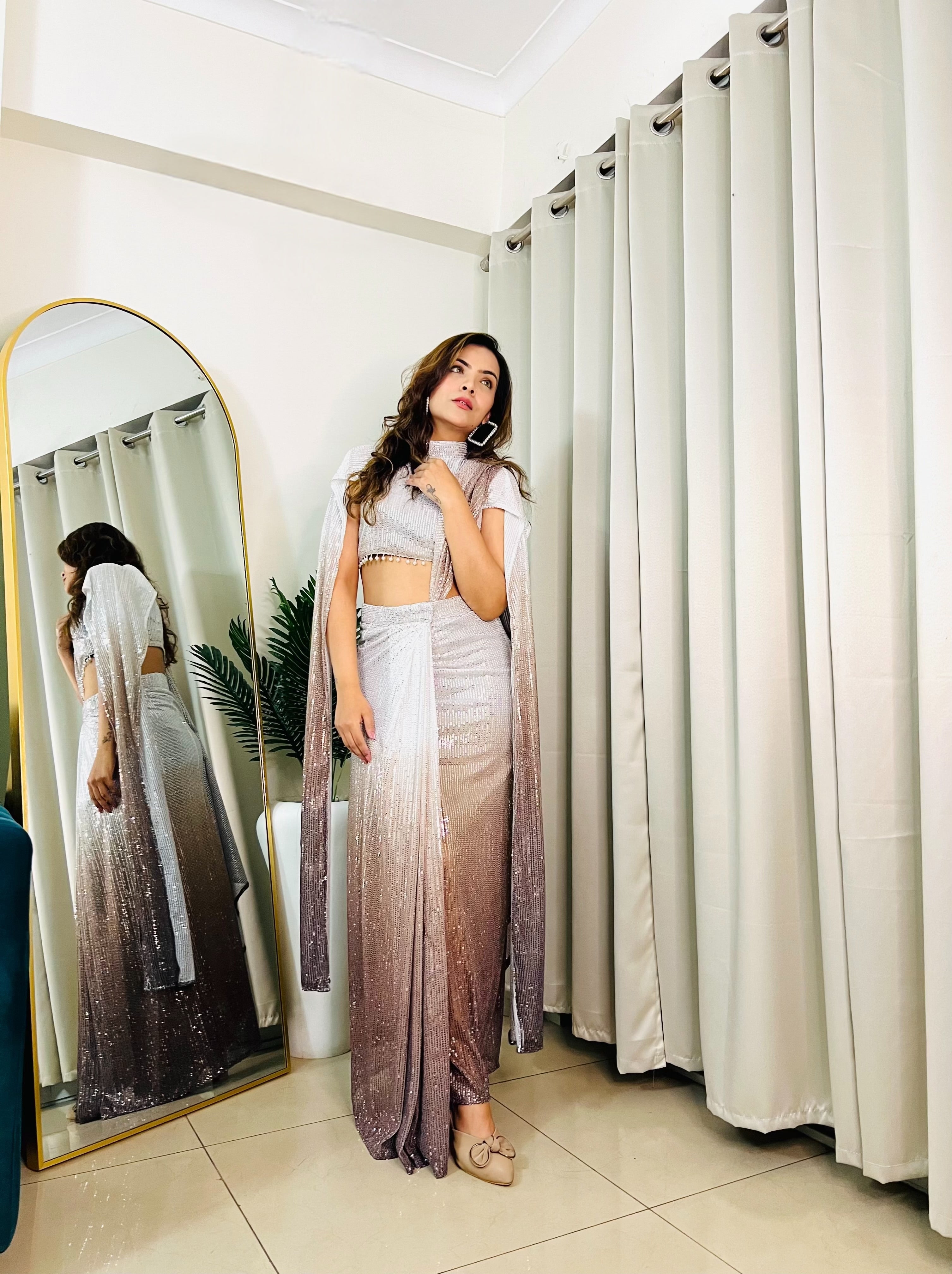 Designer and Indowestern dual shade ombre sequence Lehenga saree for Shadi and wedding function