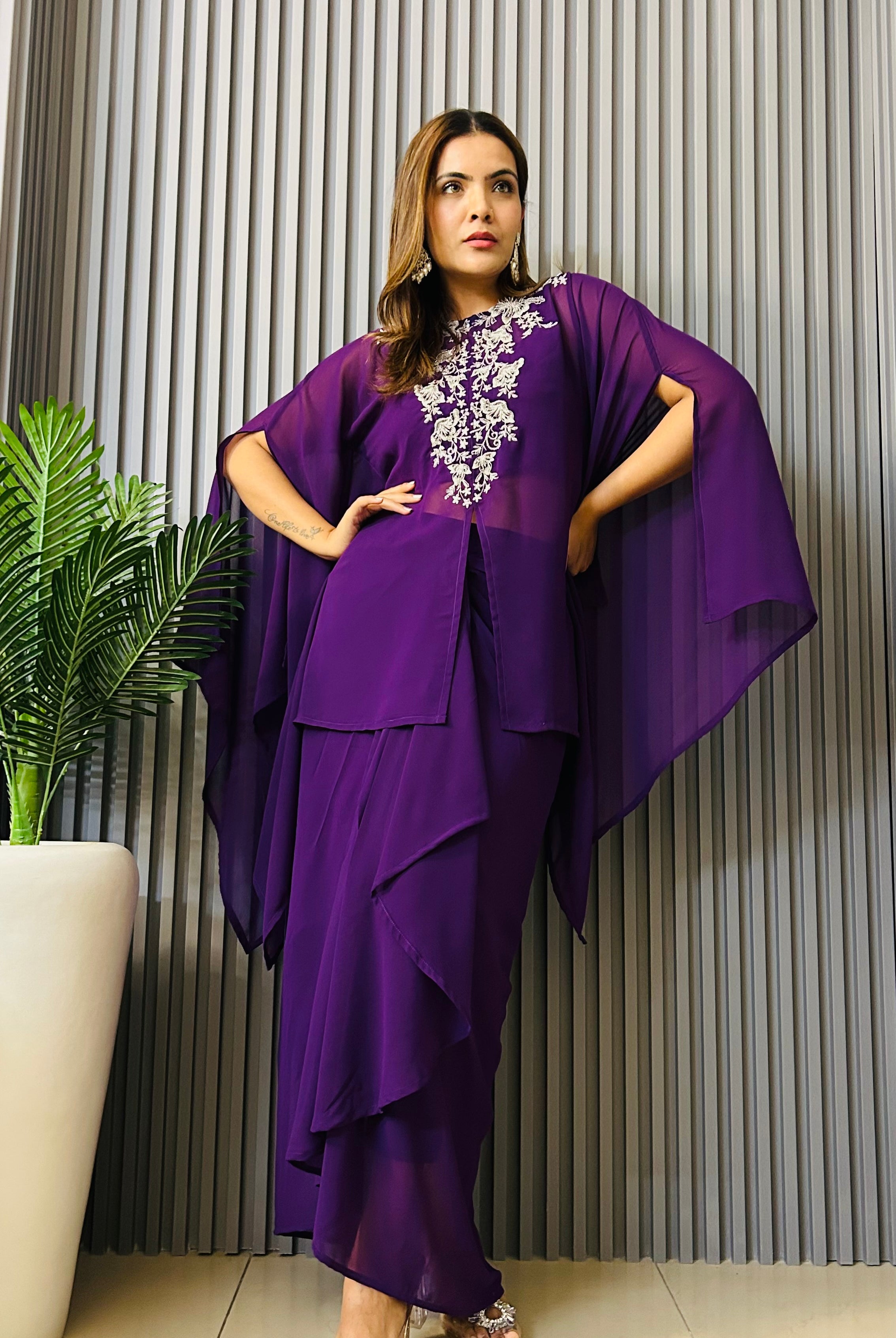 Designer Grey 3pc Dhoti Dress with crop top ,skirt & jacket