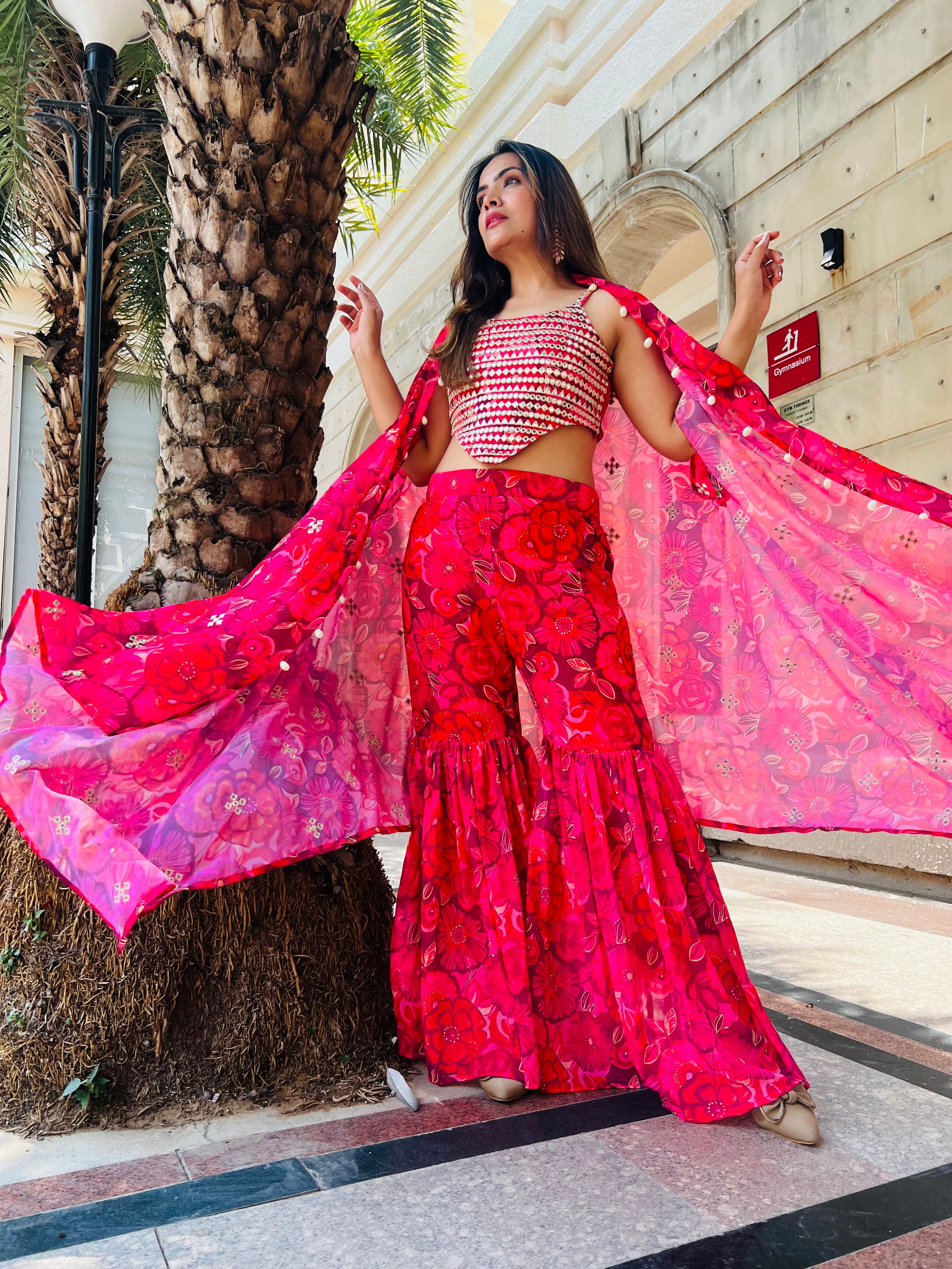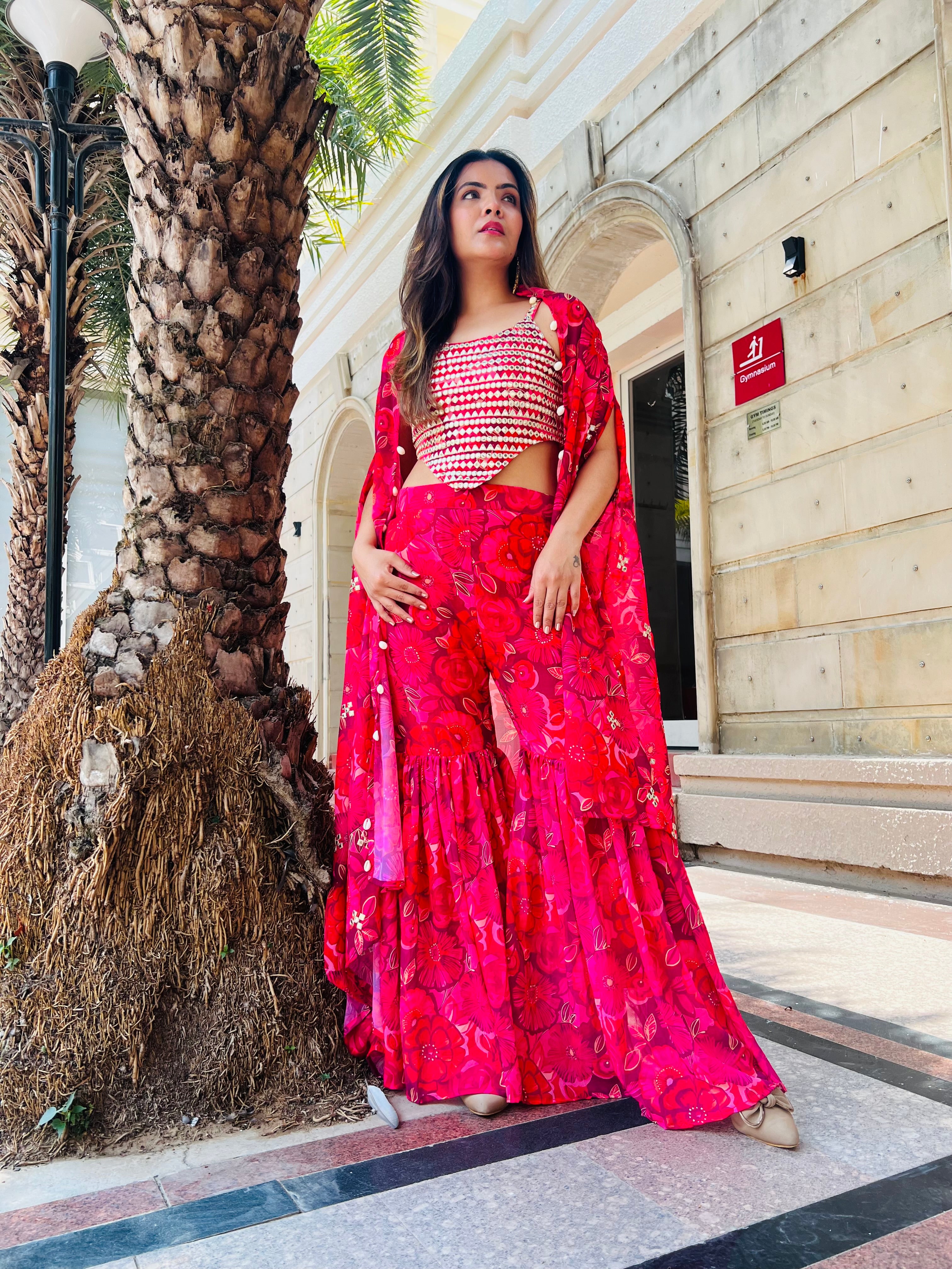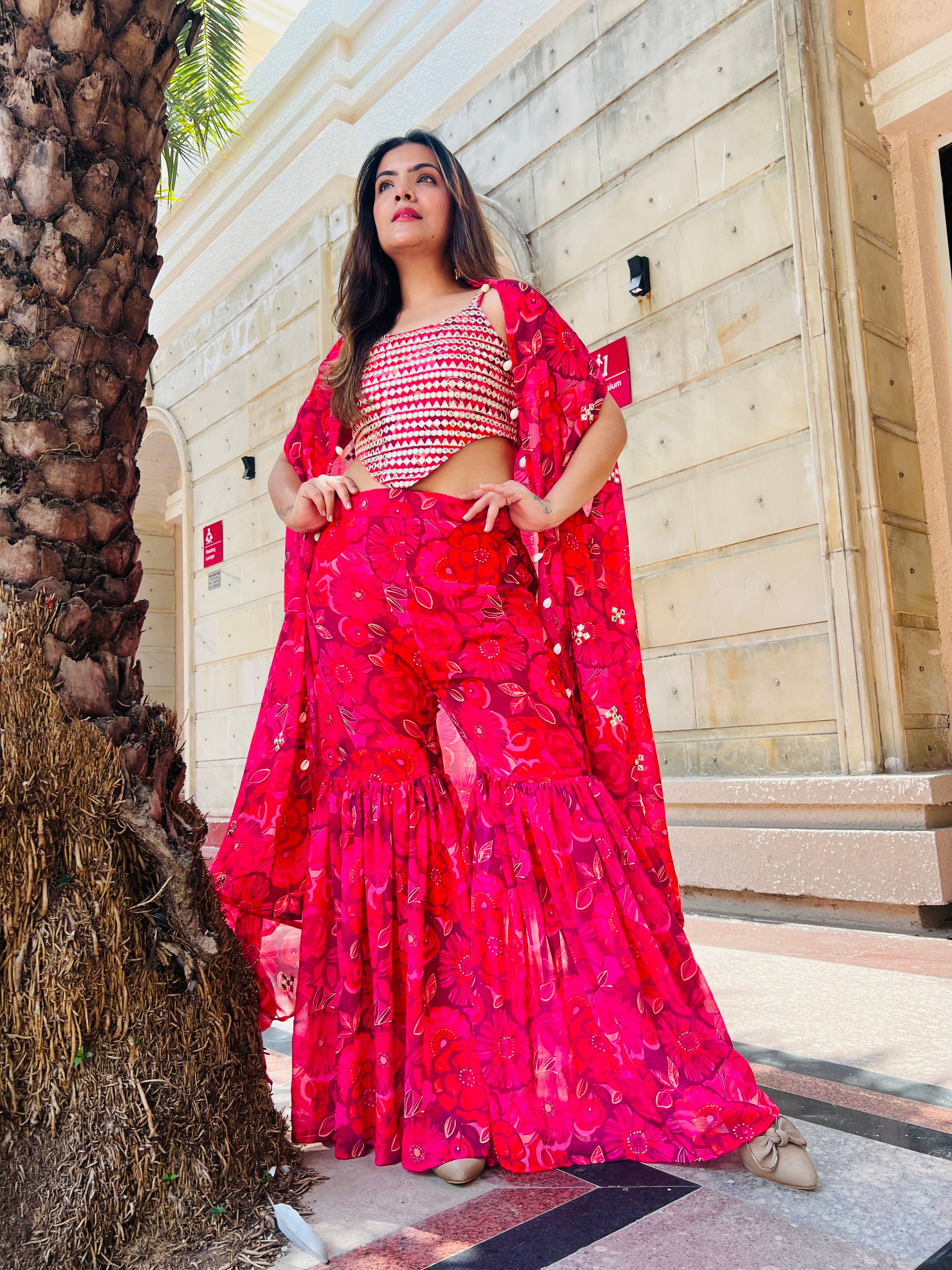 Designer 3pc Indowestern Palazzo Co-ord set in Red for all occasions
