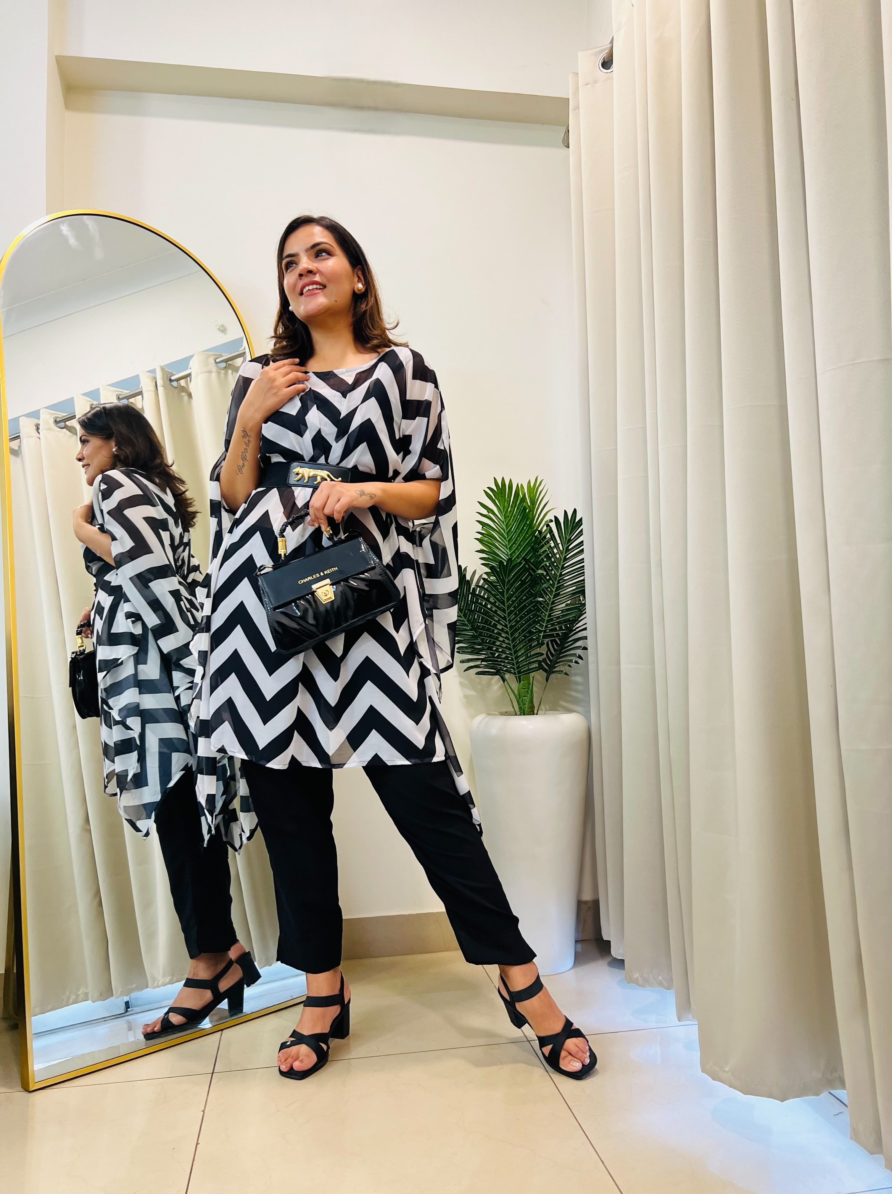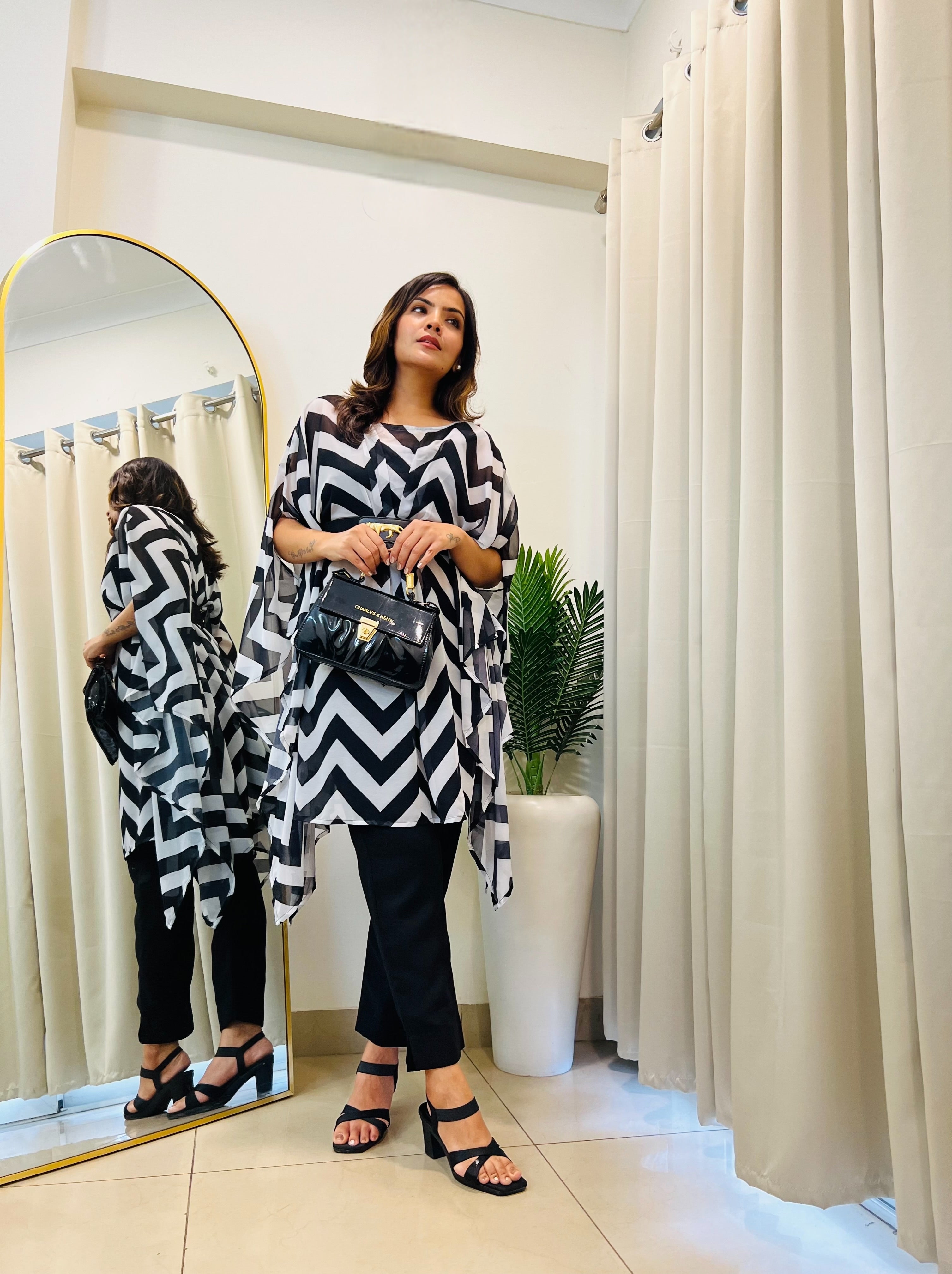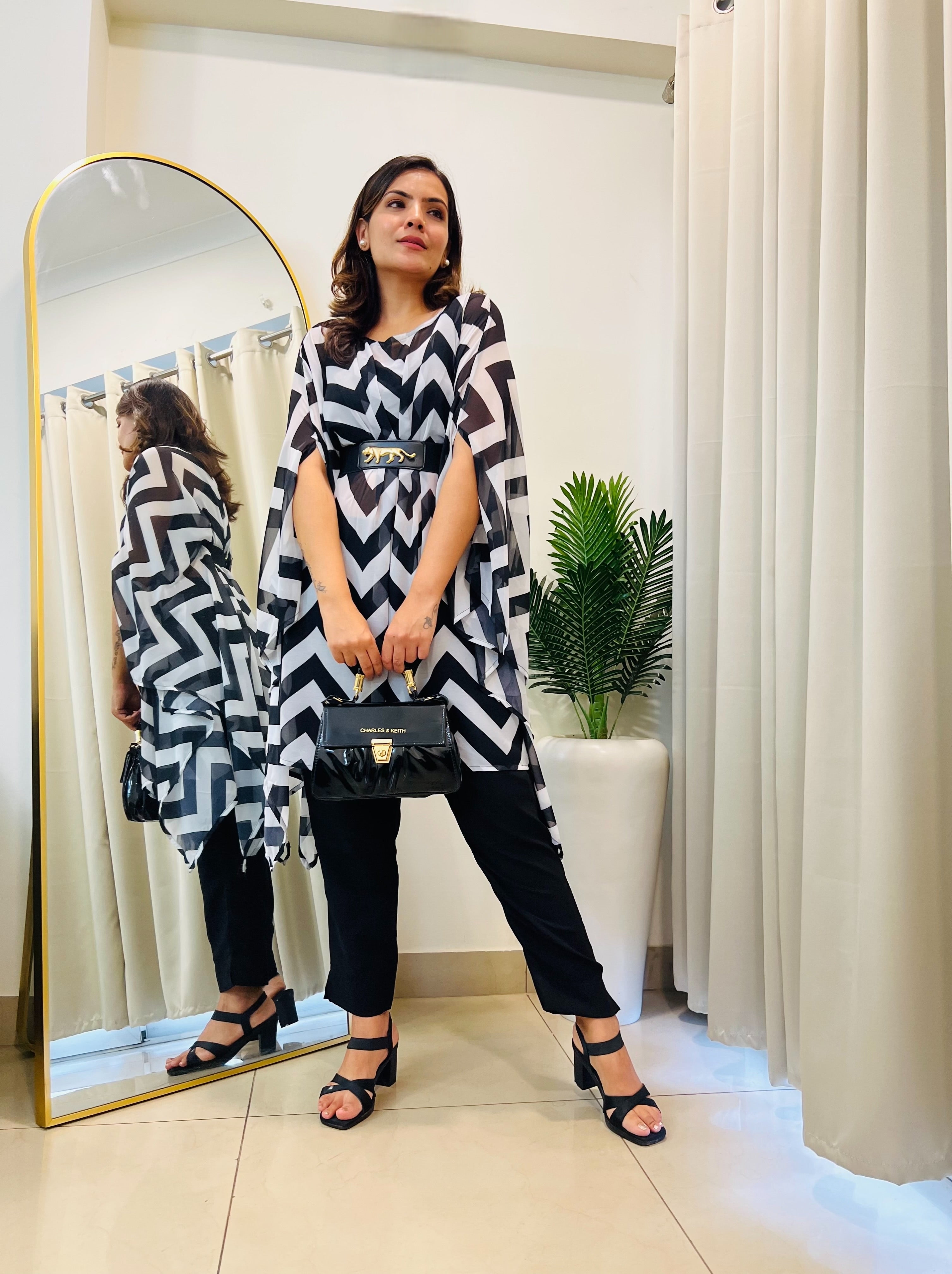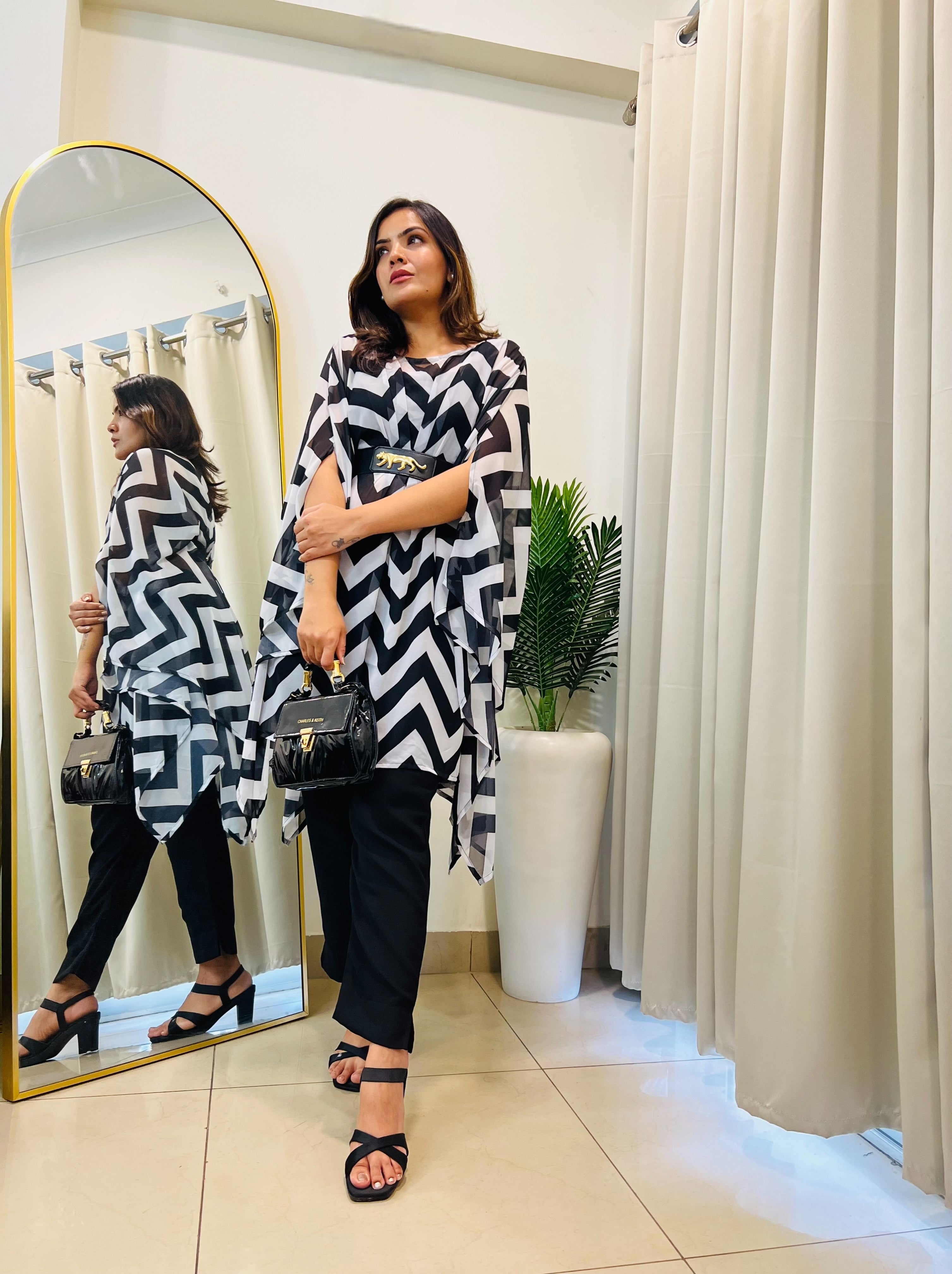 Classy & trendy black printed co-ord set kaftan for Rakhi