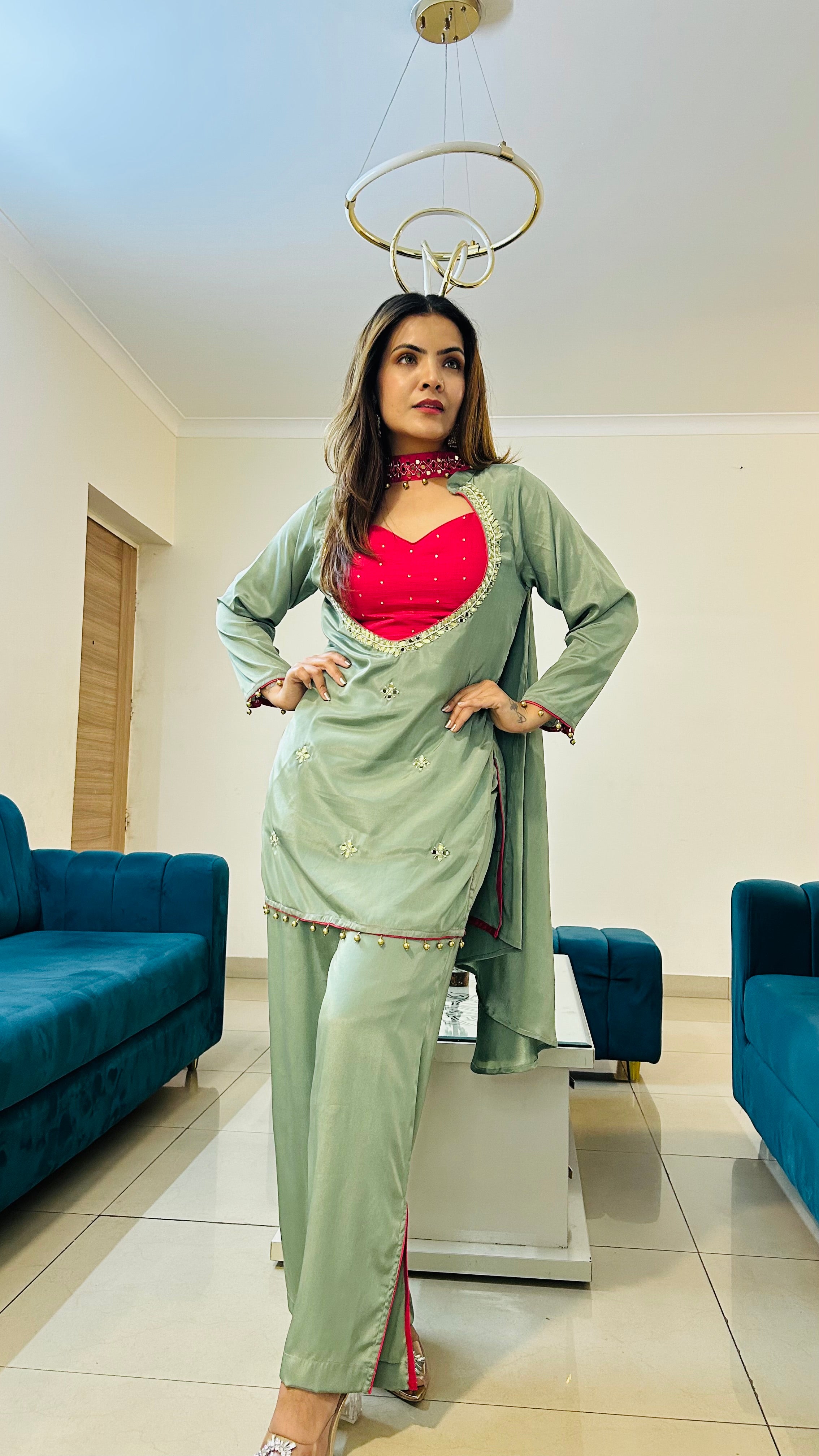 Short kurti with designer pants and choker dupatta steals spotlight where you go😊