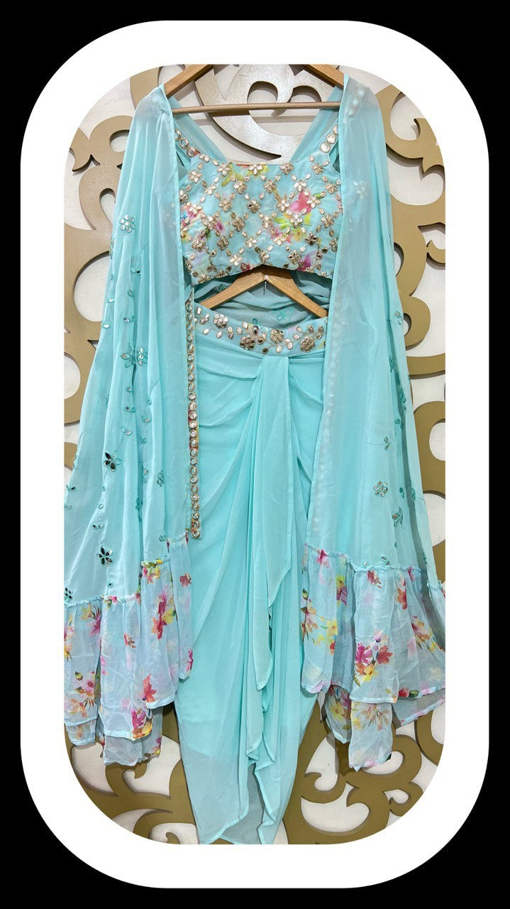 READY TO WEAR 3pcs DRESS EMBELLISHED WITH FOIL WORK CHOLI AND SHARUG,PADDED CHOLI