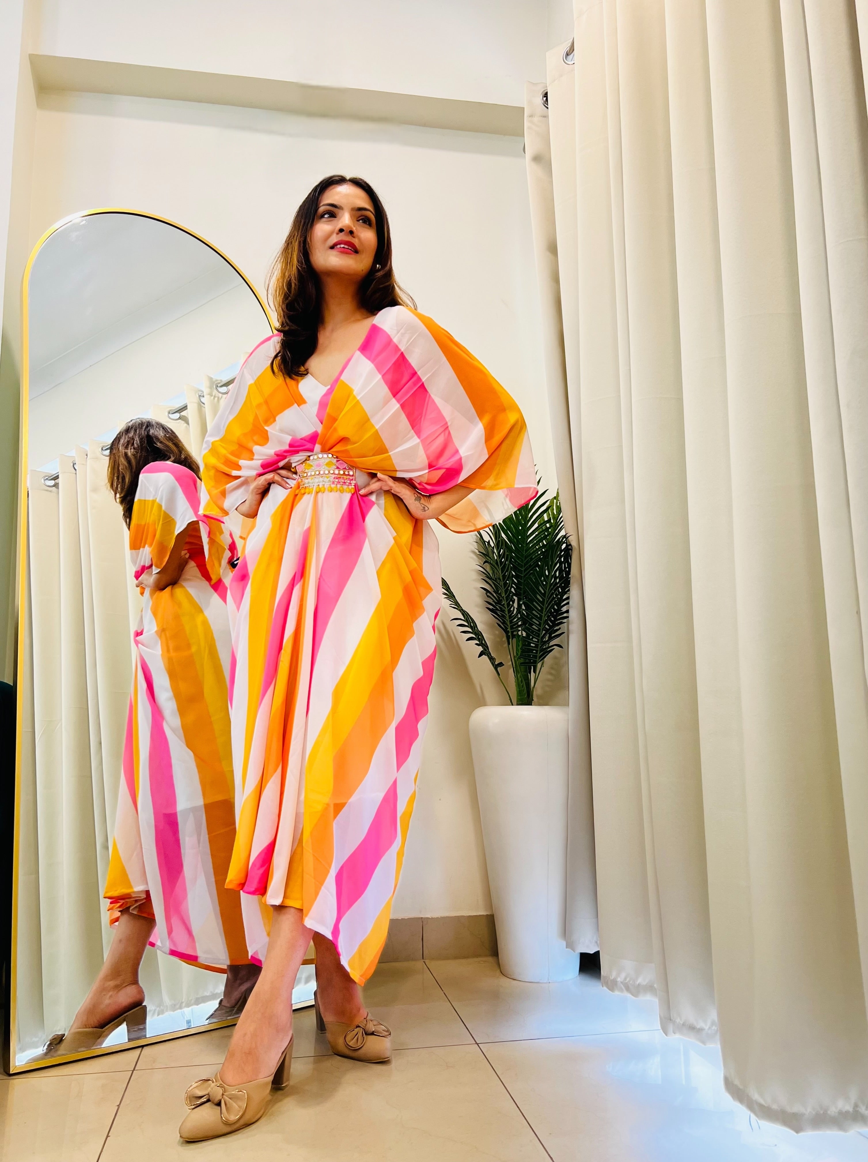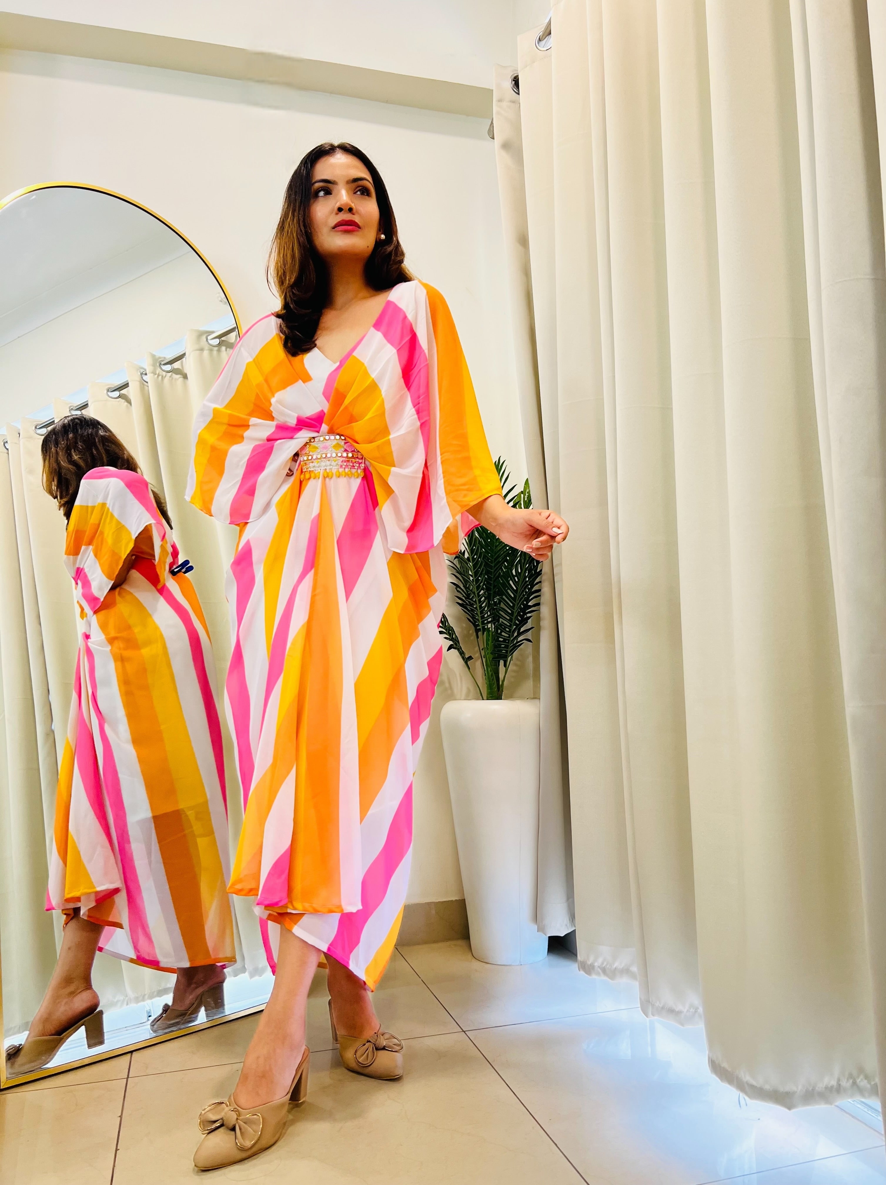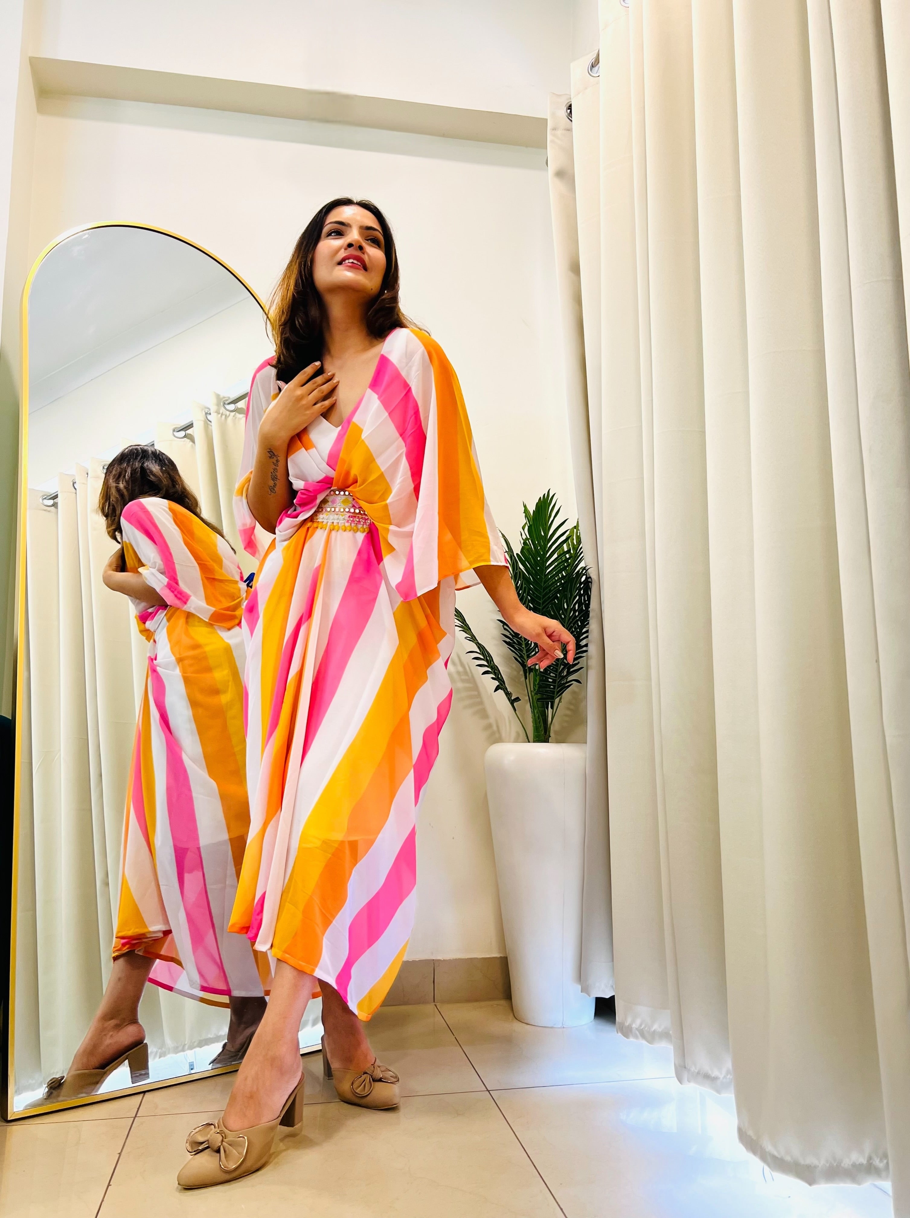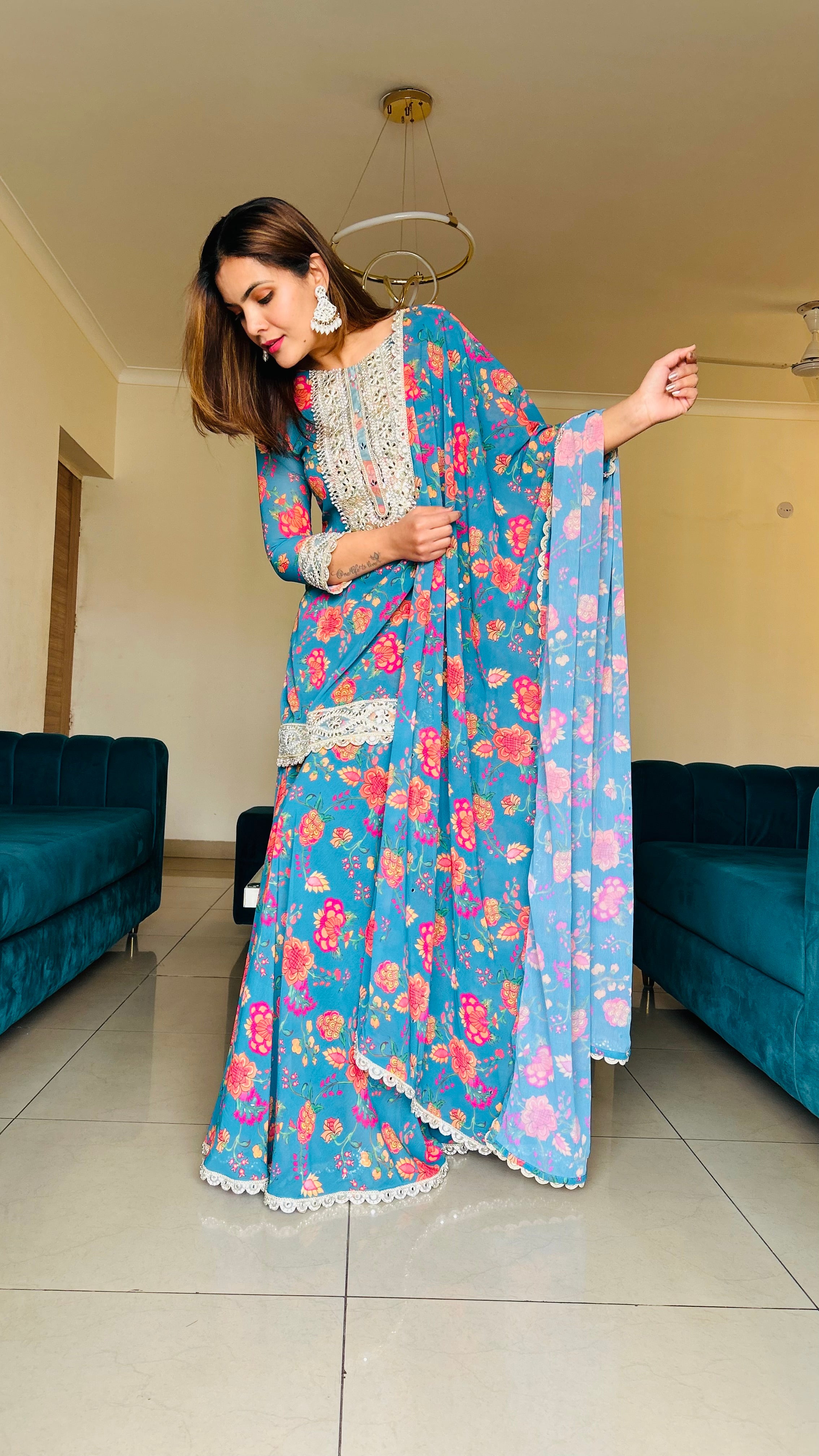 Designer 3pc Indowestern sarong outfit skirt ,top with flowy kaftan perfect wedding wear outfit for womens