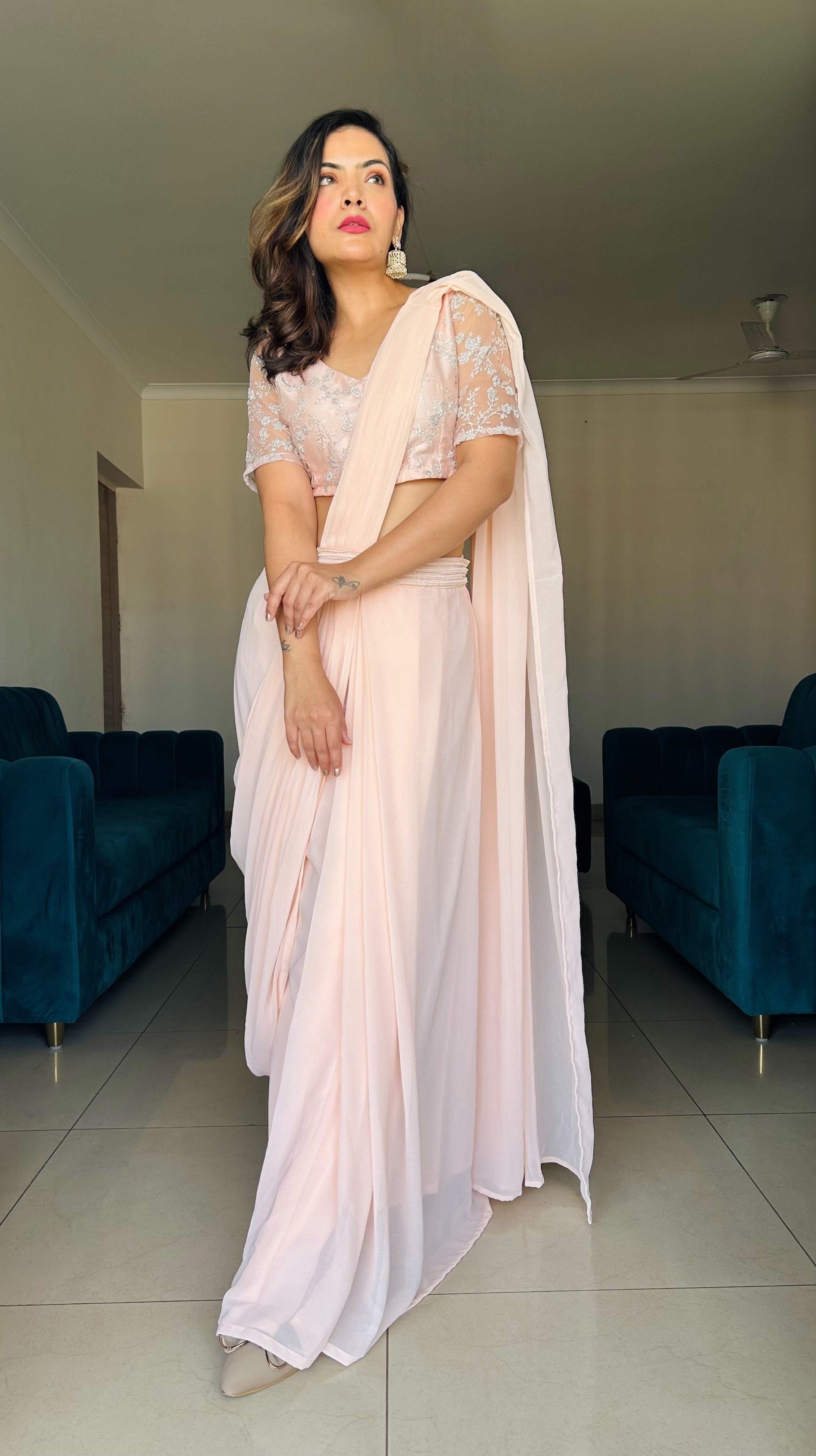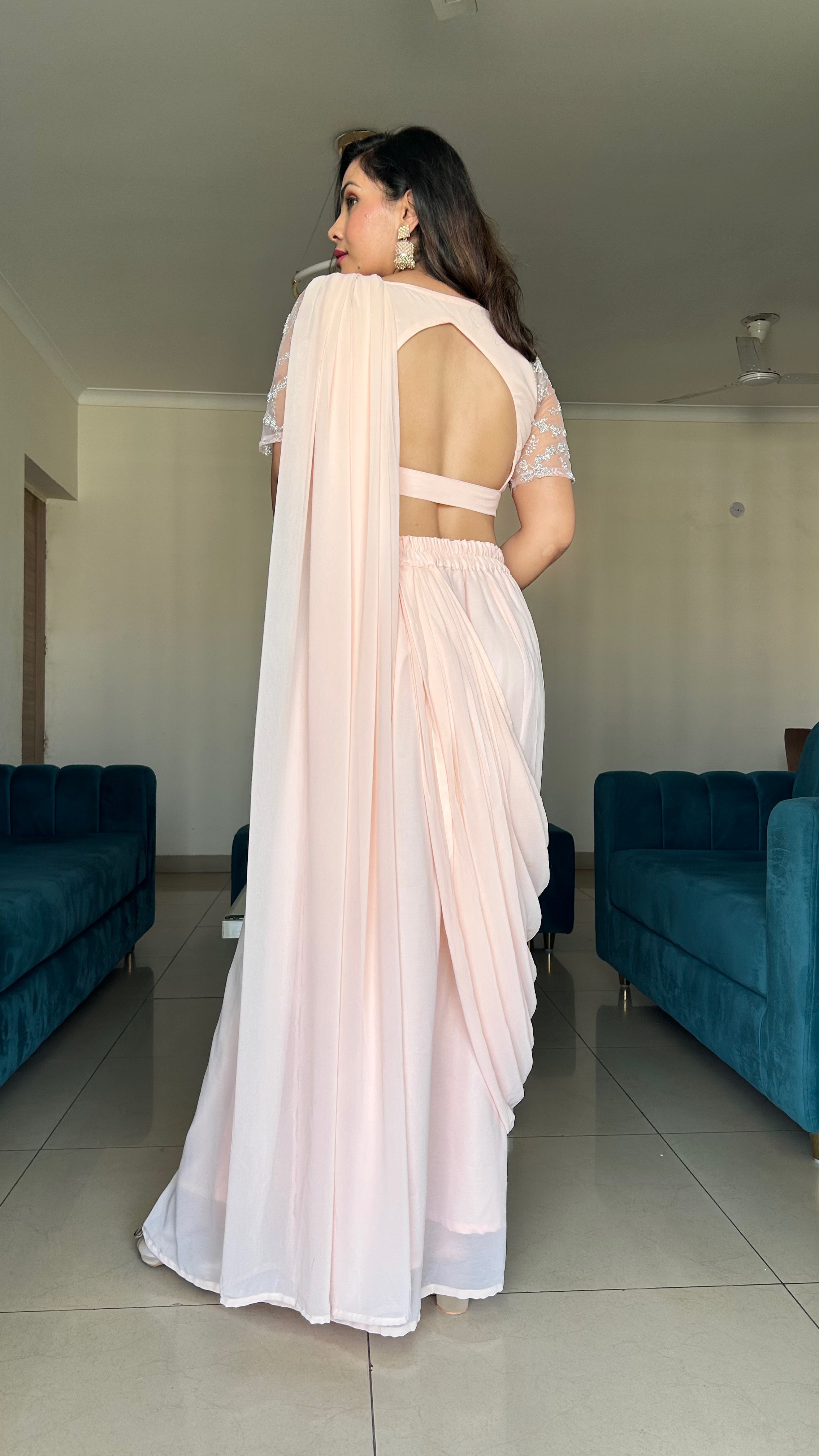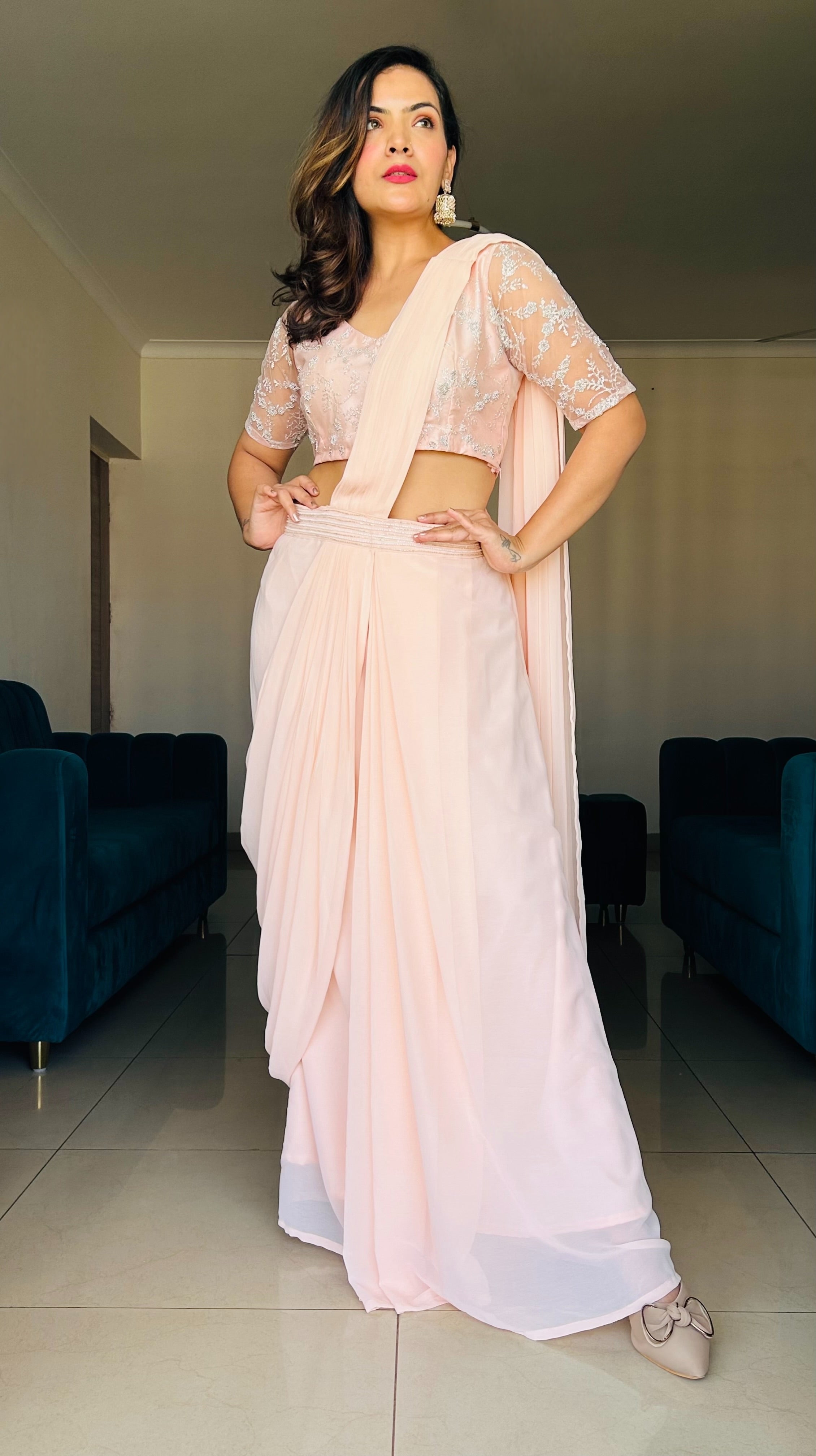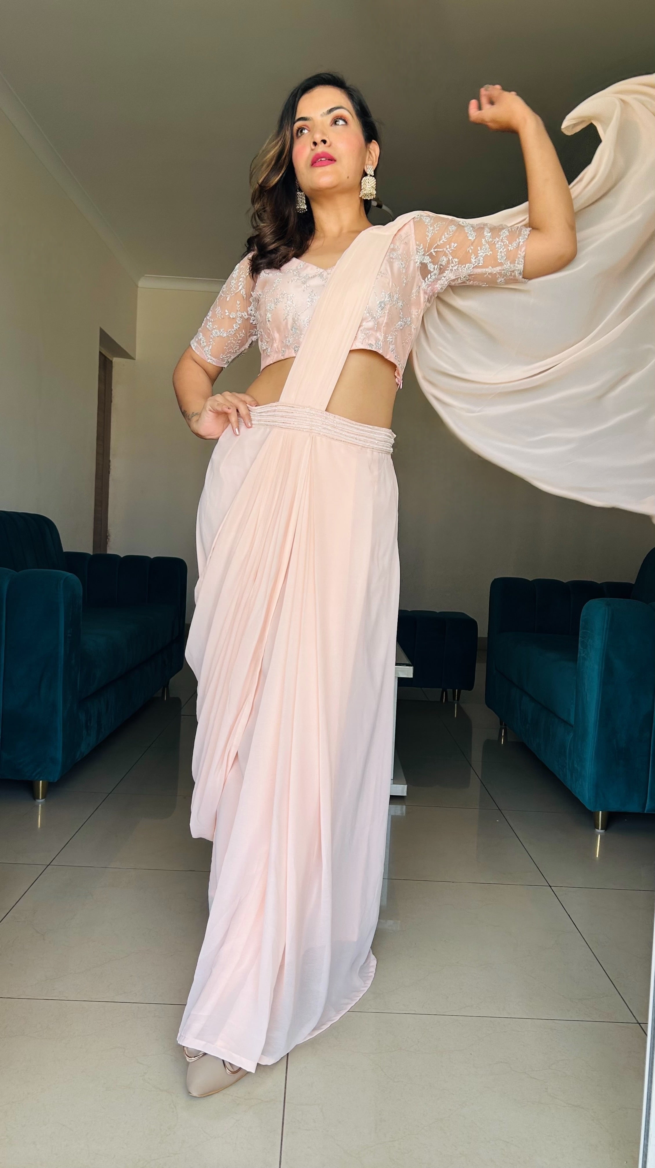 Indowestern Ready to wear Saree in Light Peach for Perfect Wedding & Festive Wear for women’s