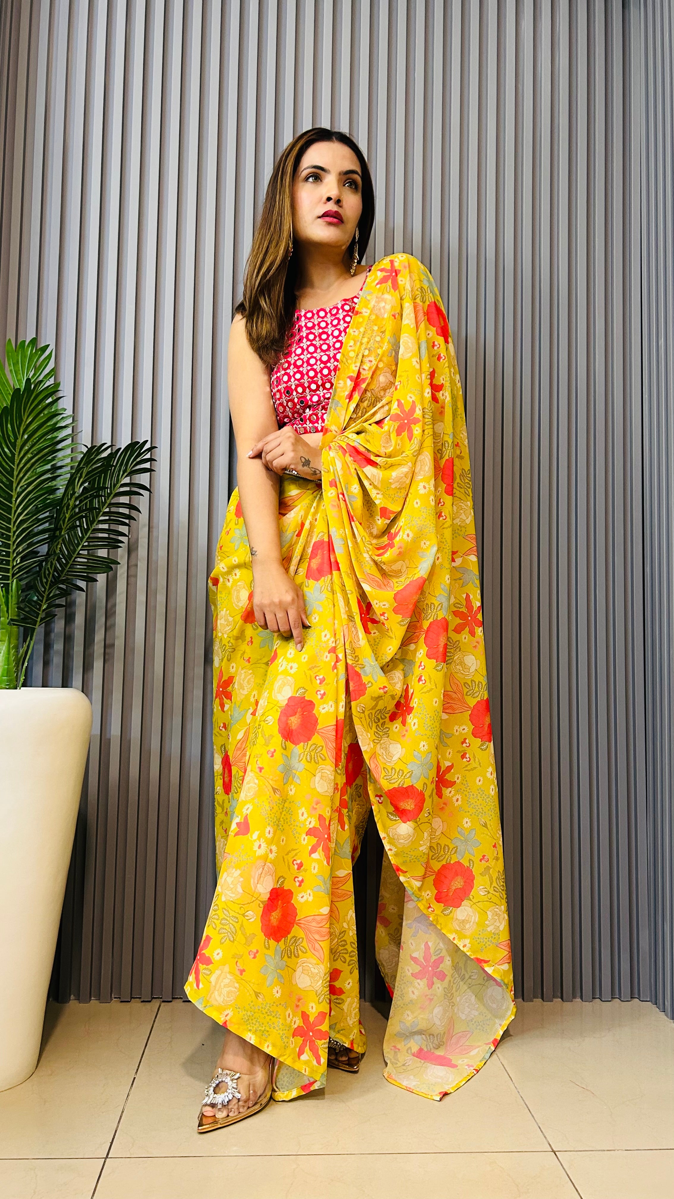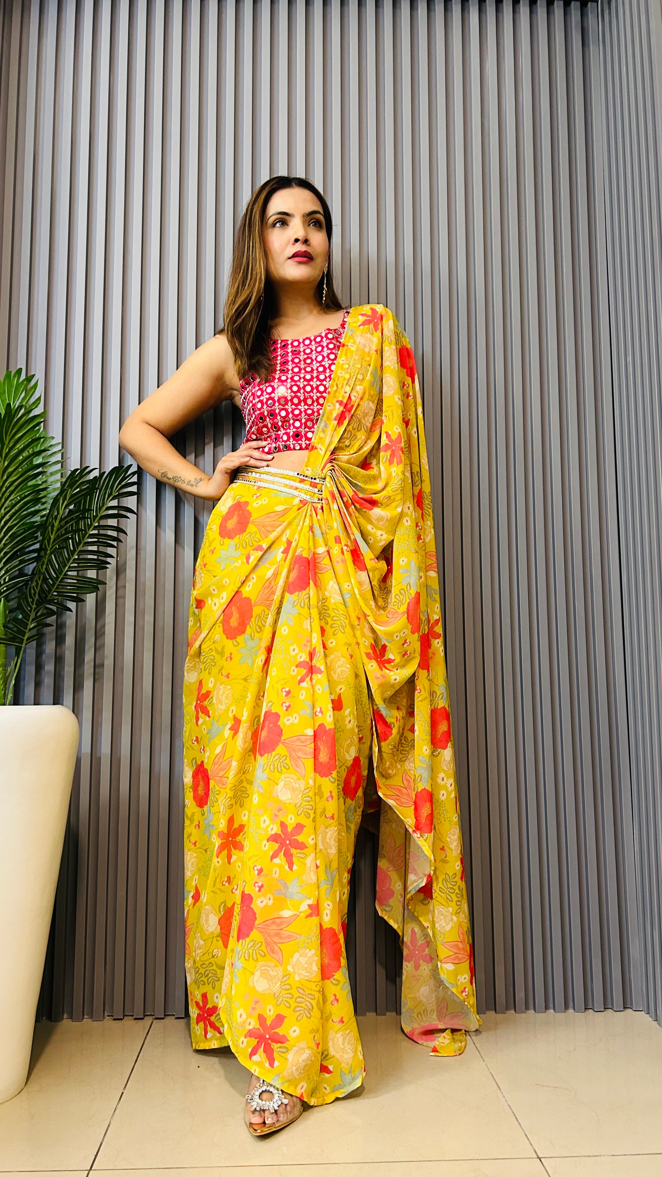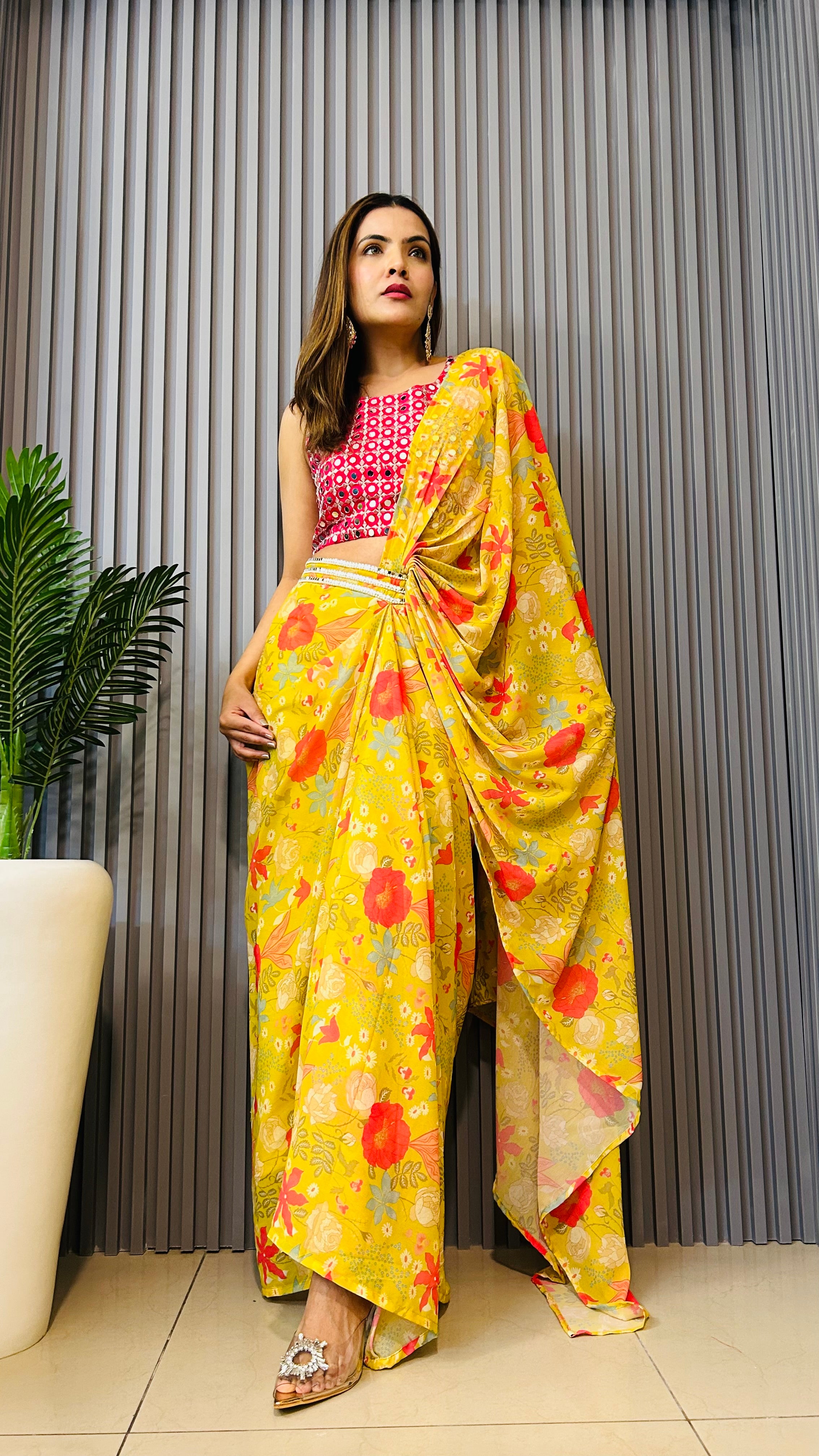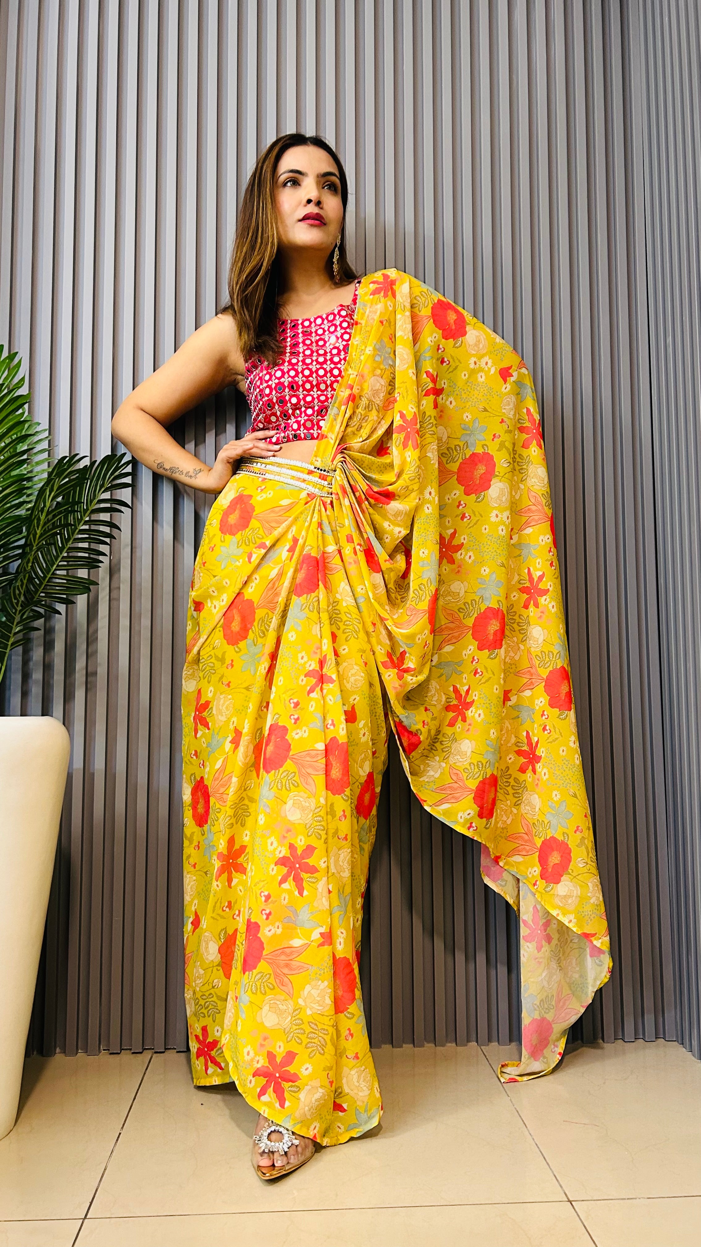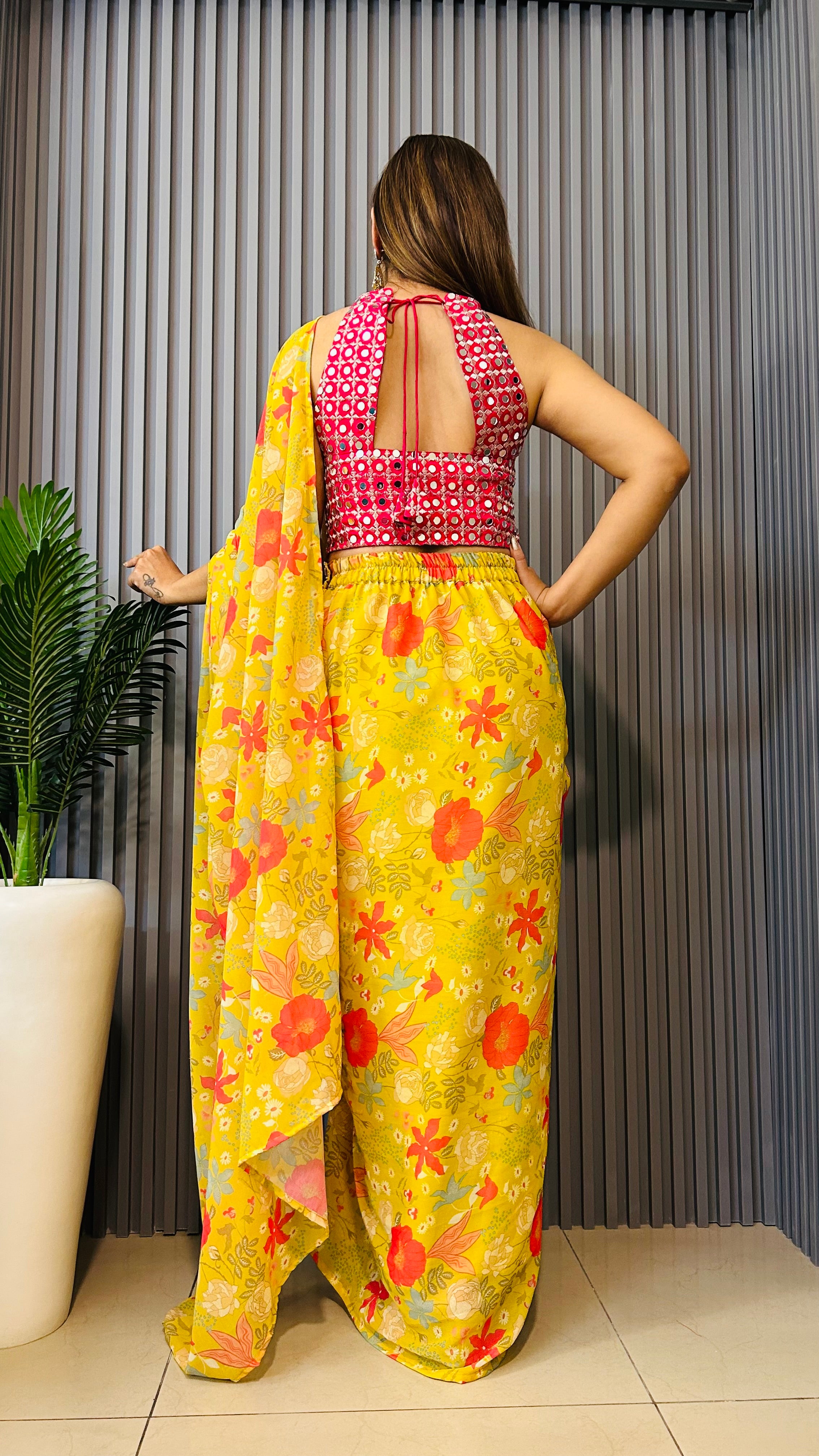 Ready to wear masaba drape saree with halter neck top embellished with mirror perfect Haldi dress