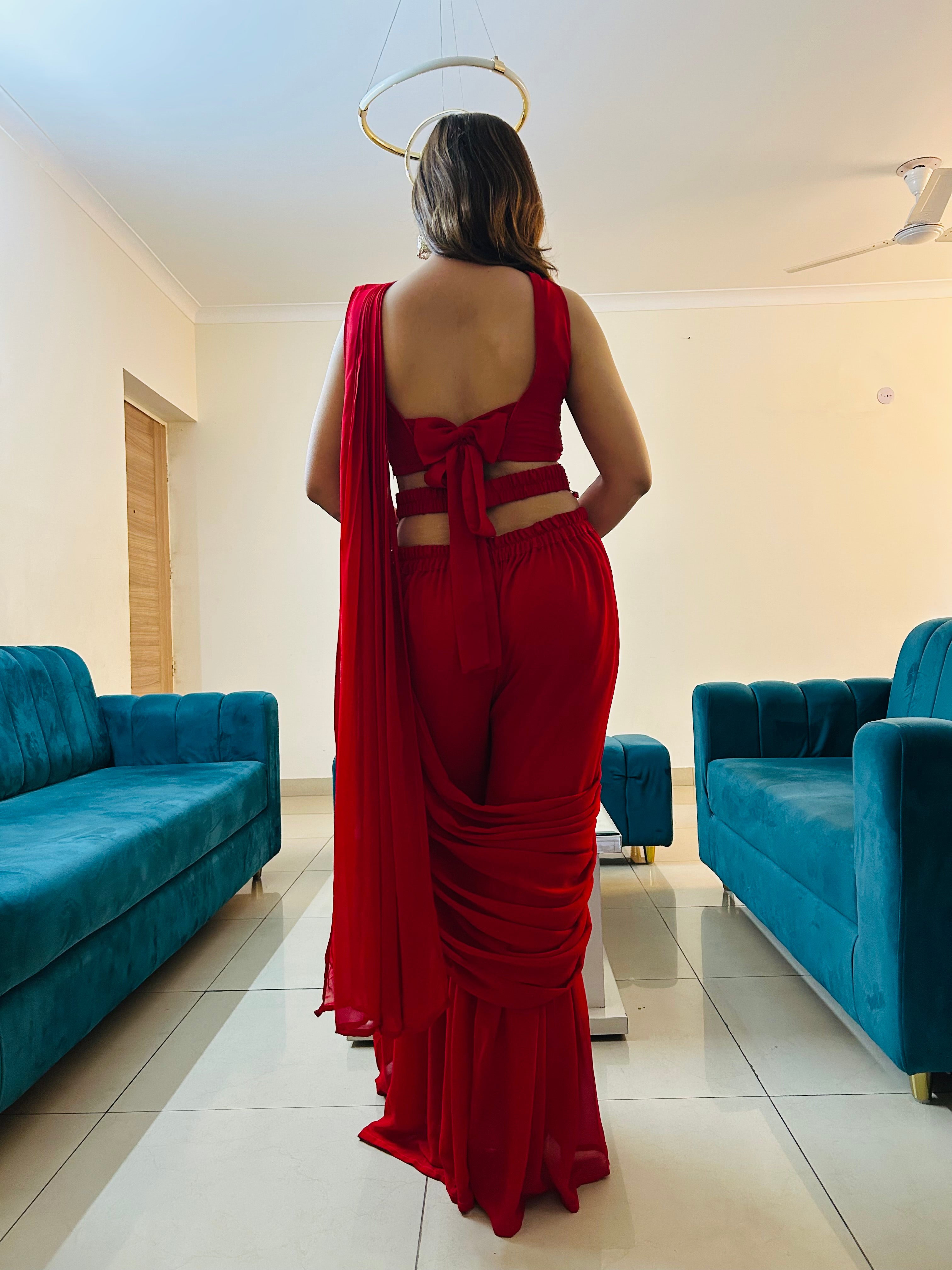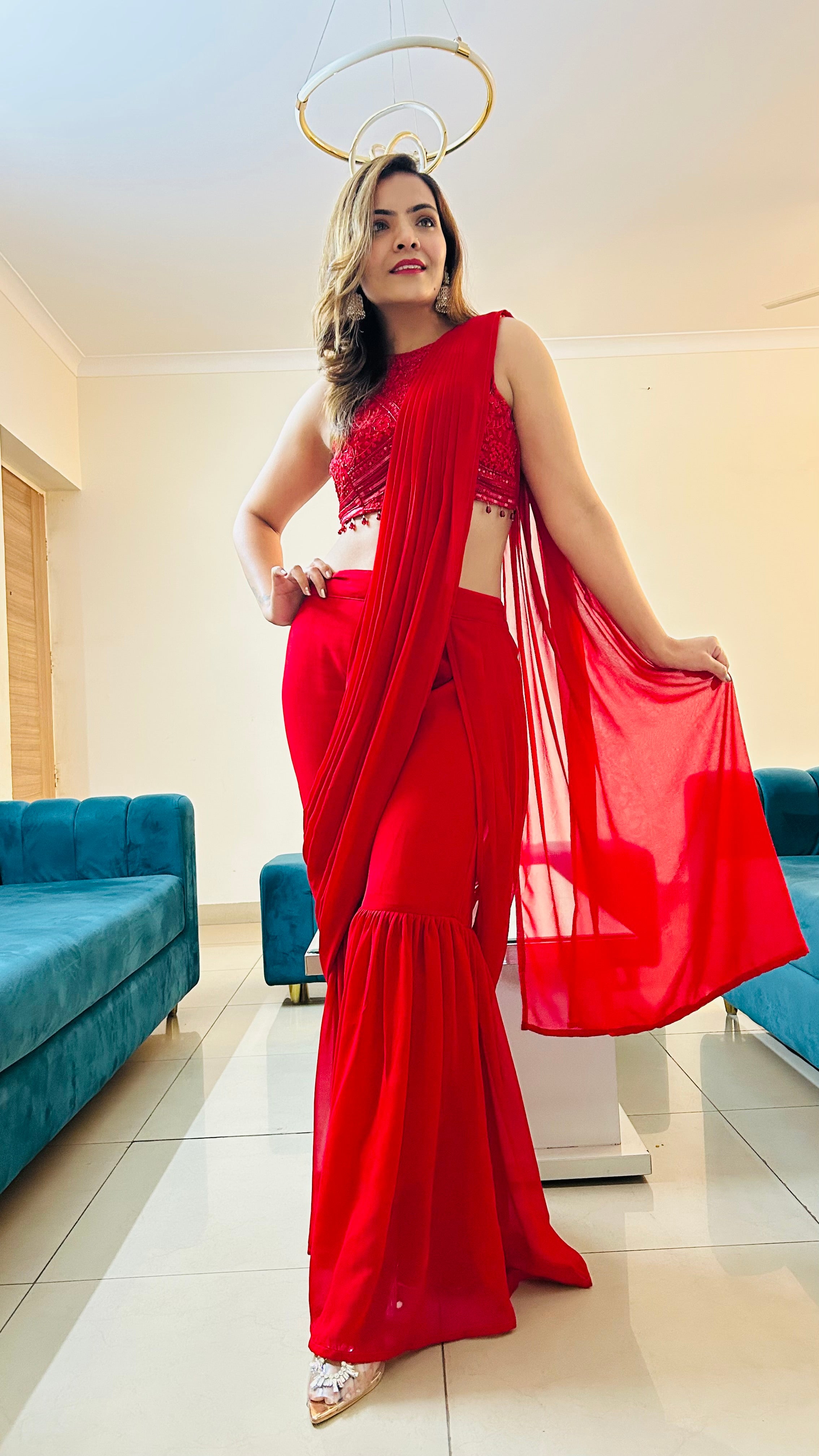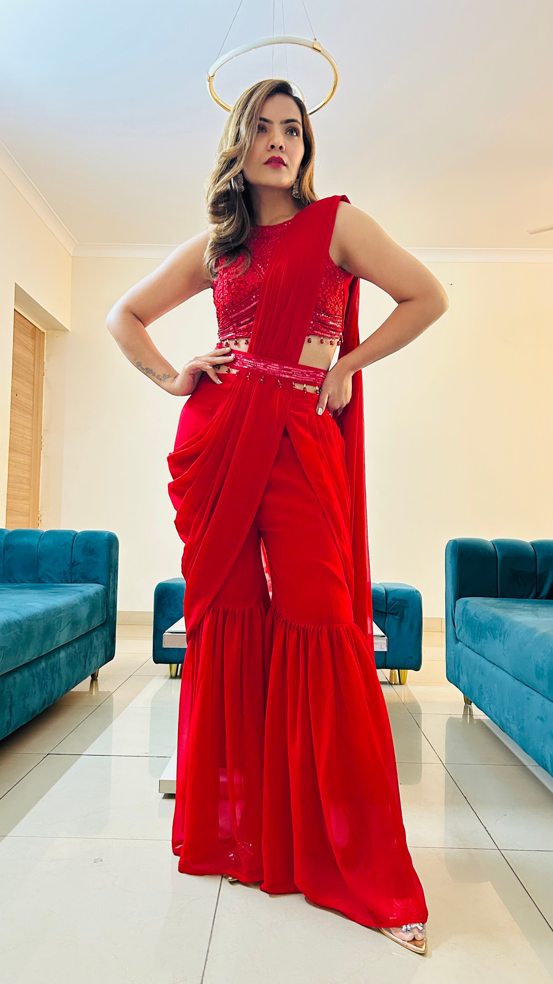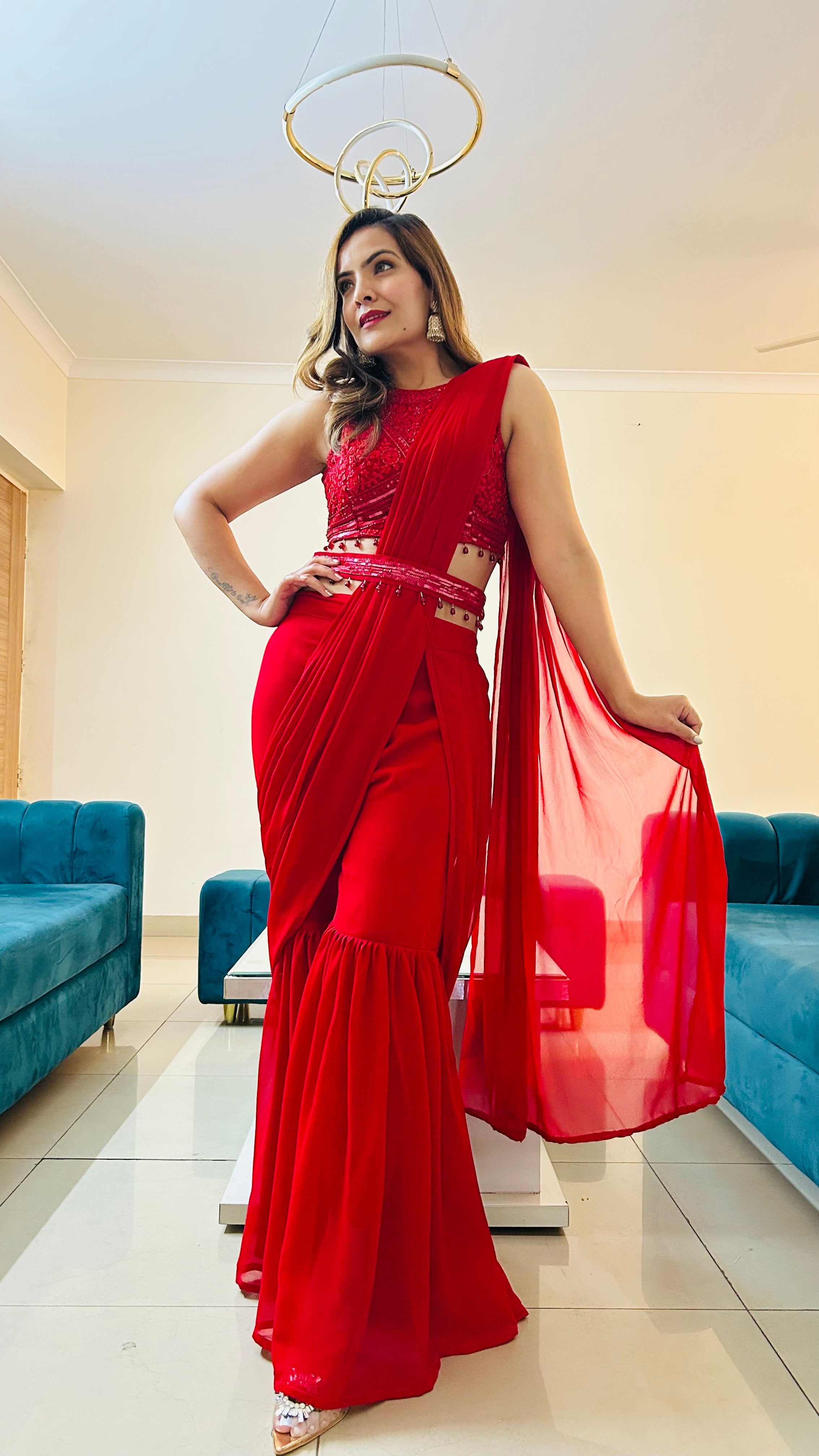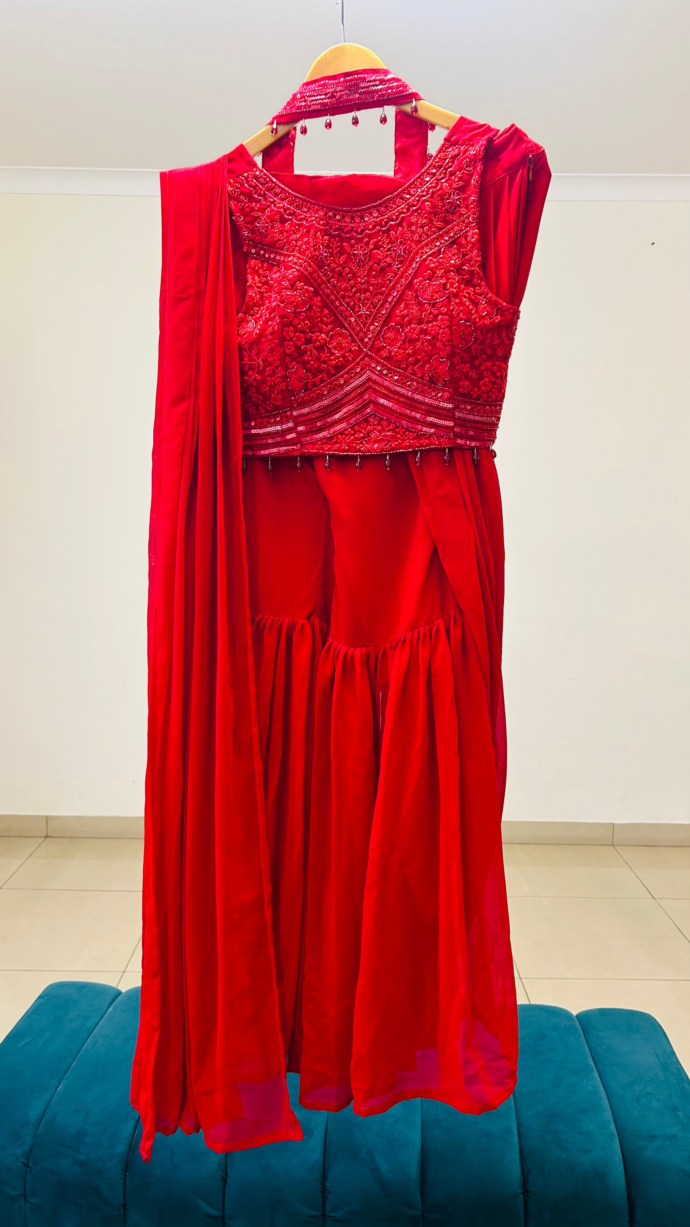 3pc Red Designer garara saree for women ,perfect bridesmaids & valentine dress