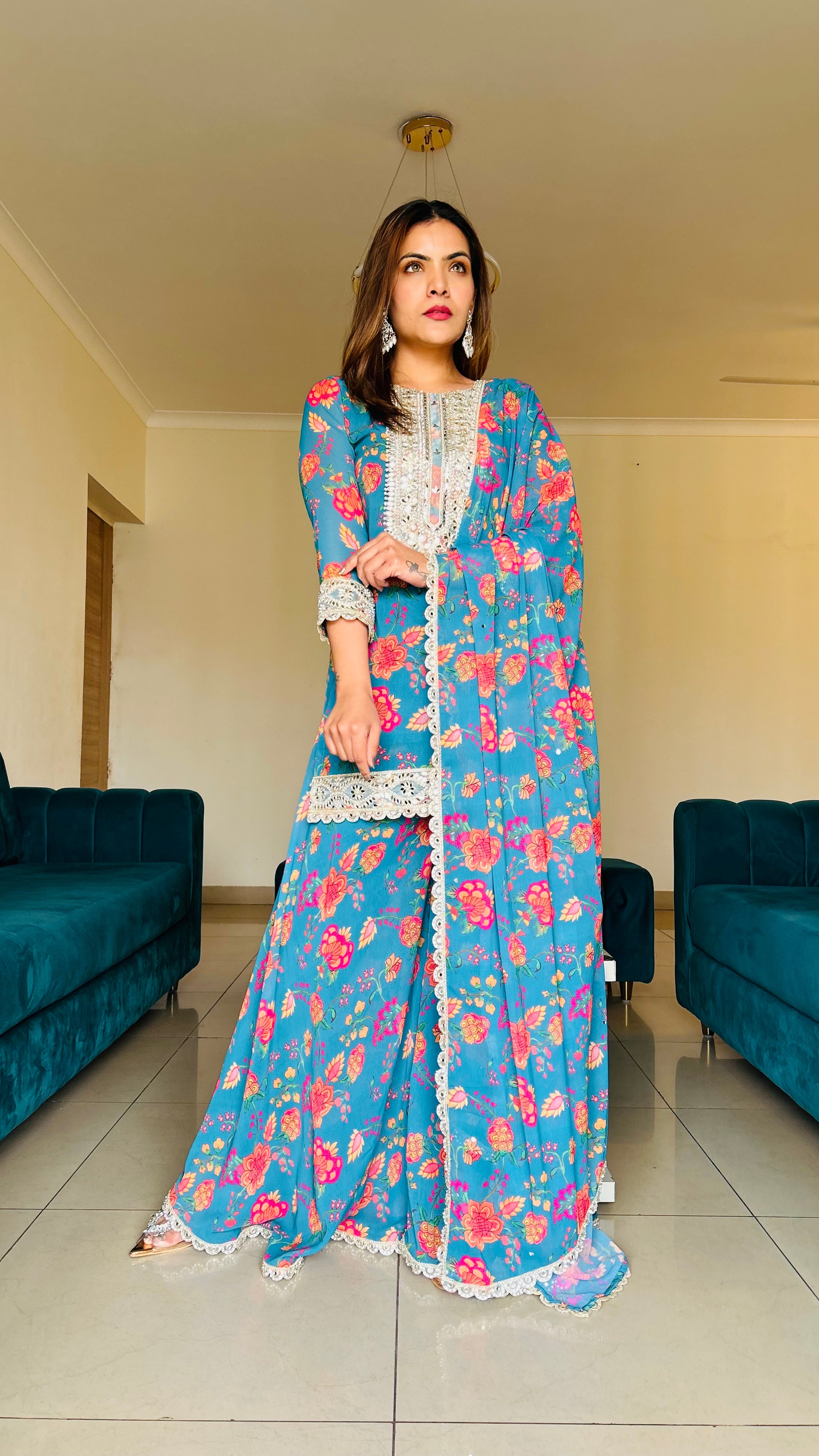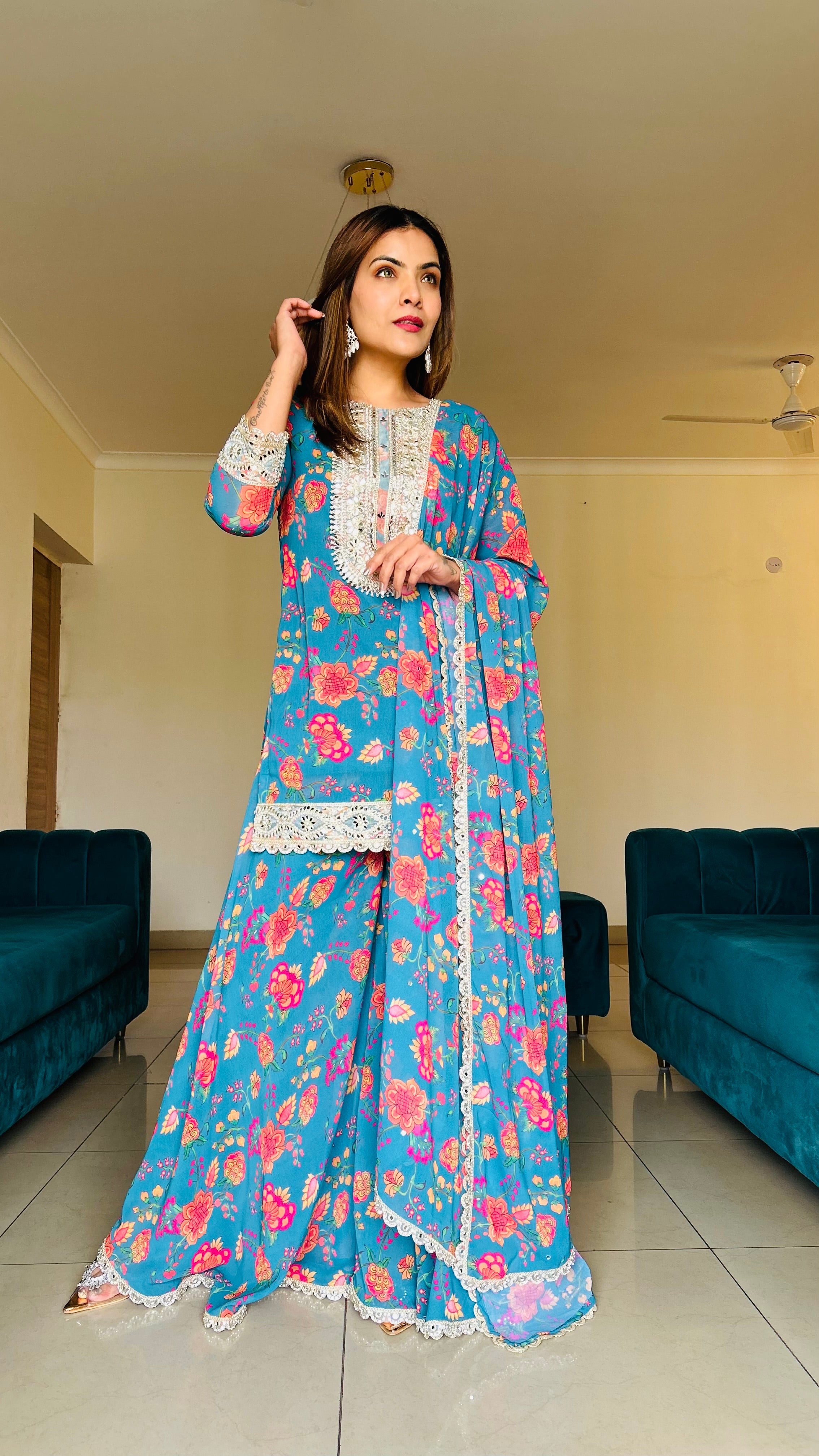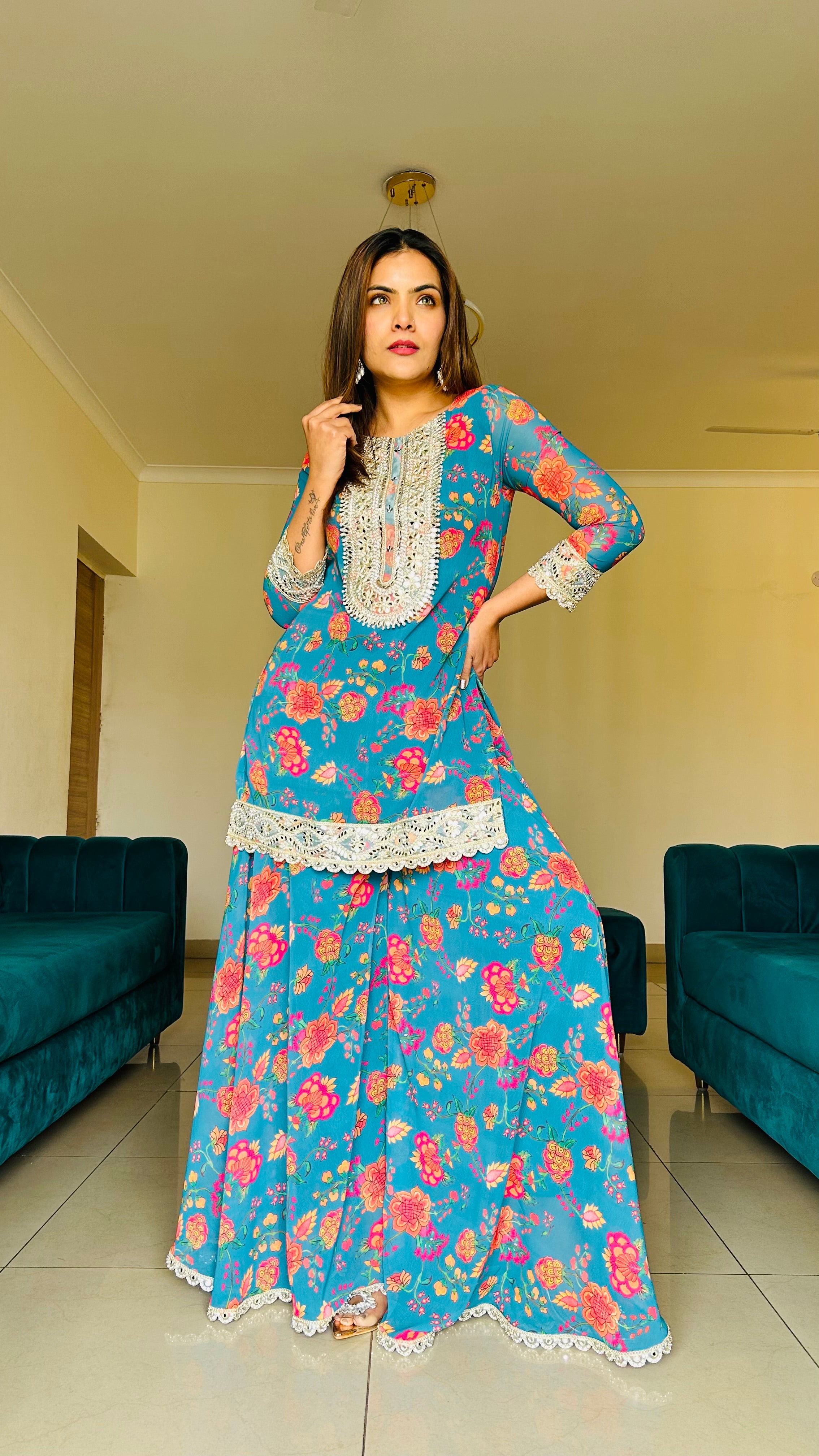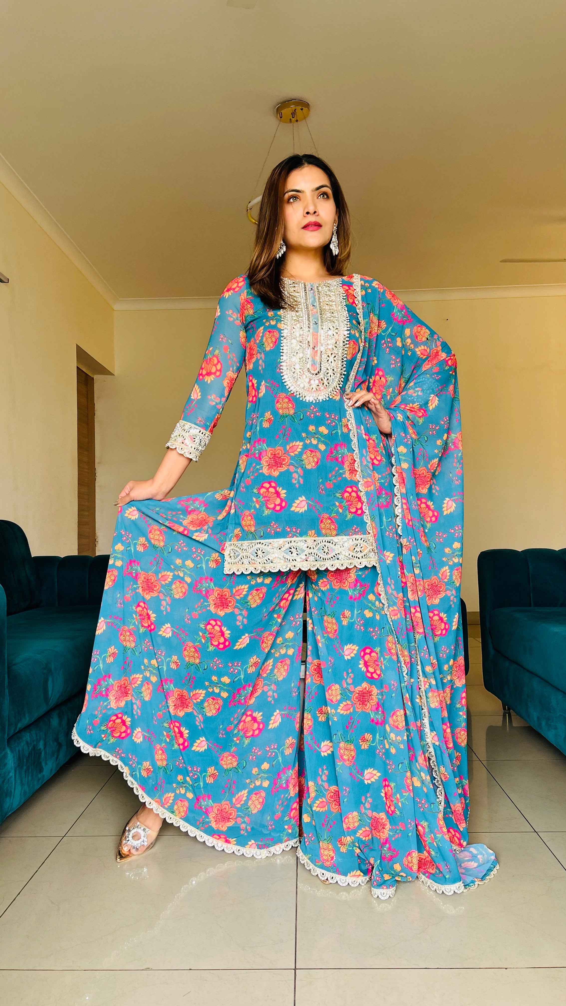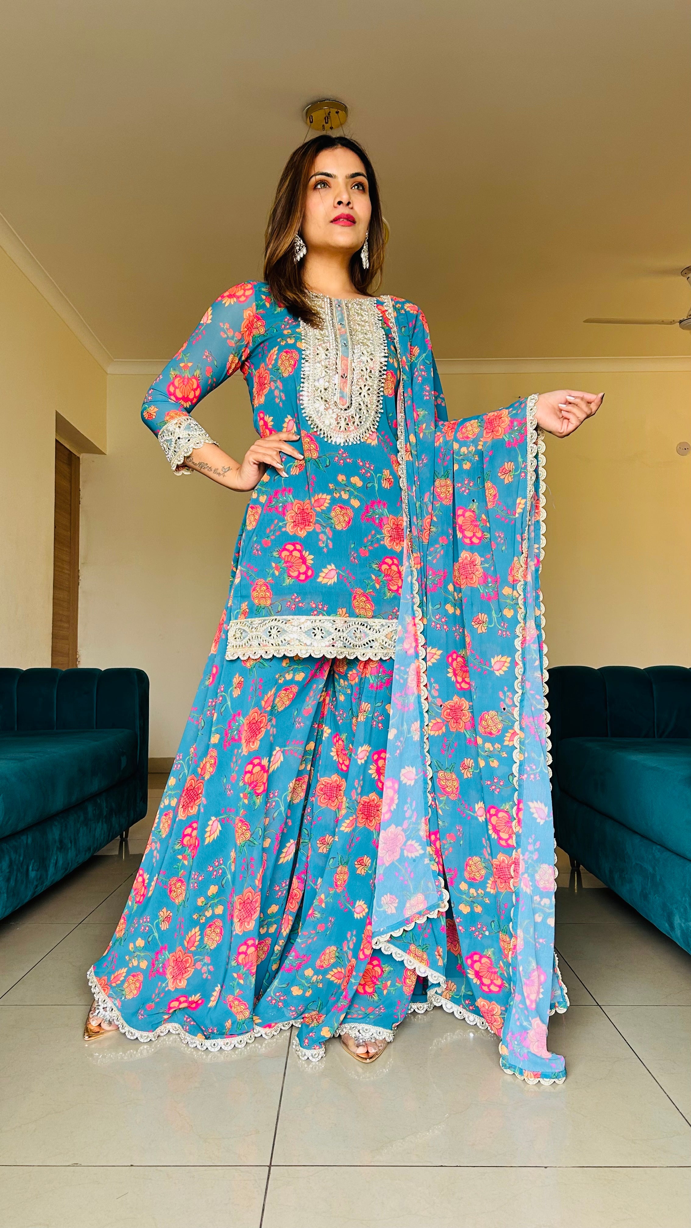 Floral printed sharara set with dupatta for carnival & Mehendi .