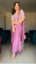 Elegant Mauve Satin Pre-Draped Saree with Beaded Blouse β Designer Party Wear by RK Kurtis