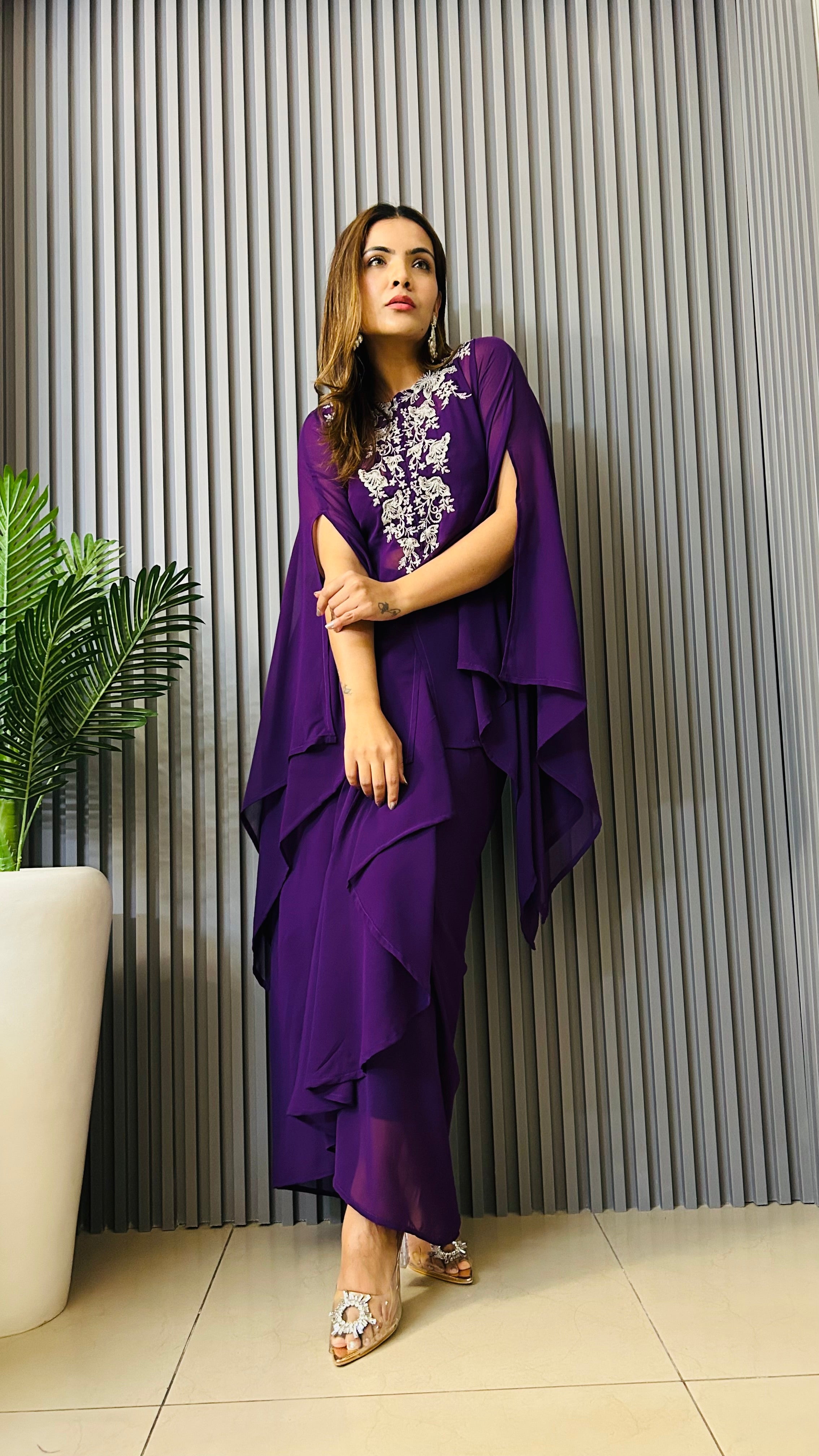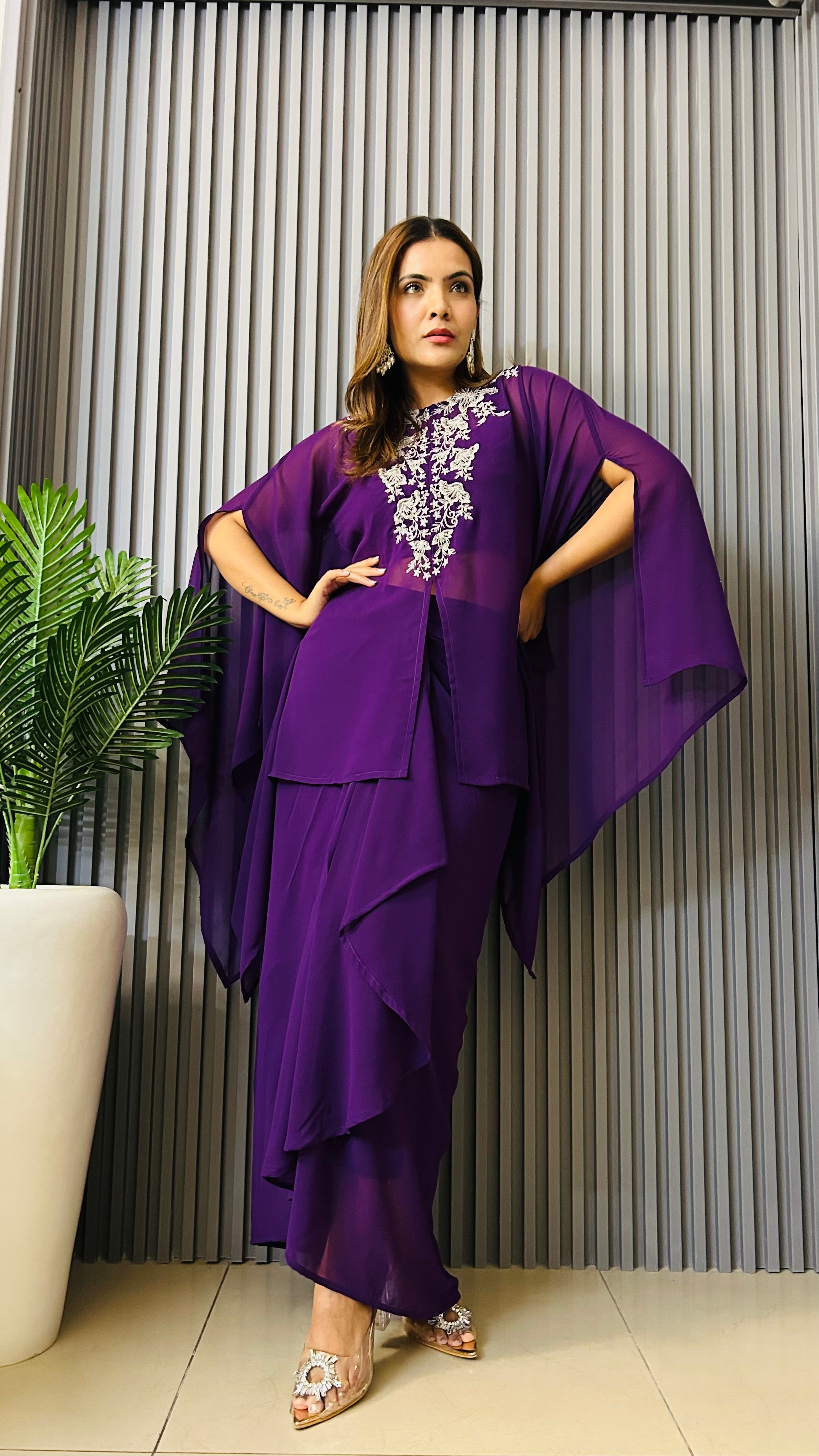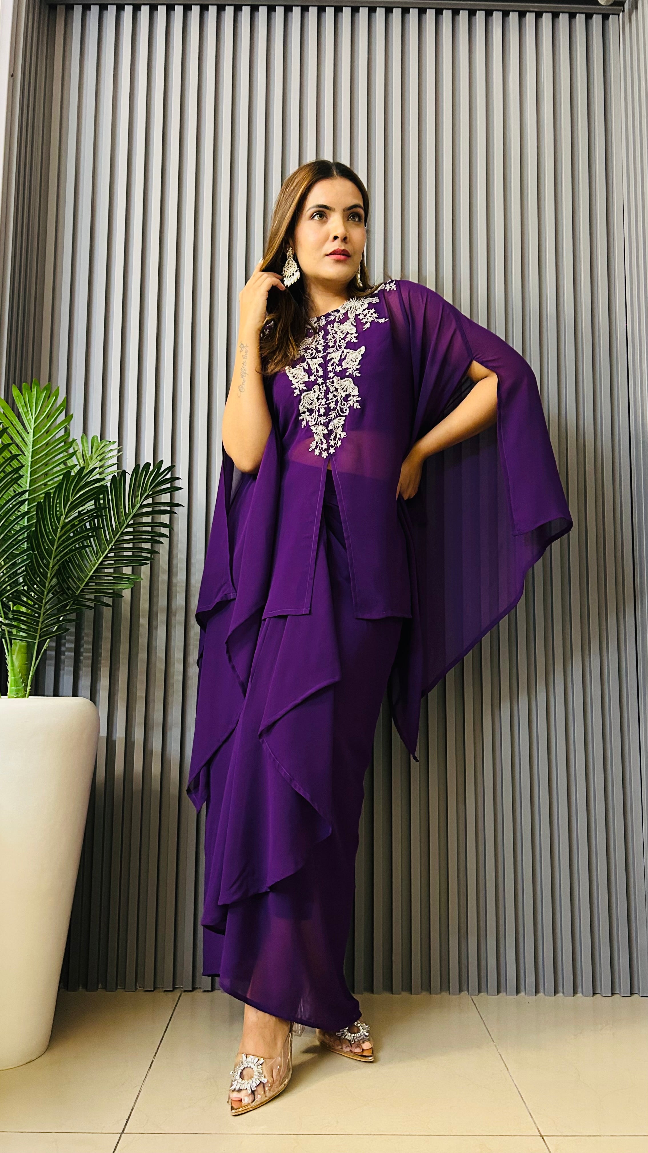 Designer 3pc Indowestern sarong outfit skirt ,top with flowy kaftan perfect wedding wear outfit for womens