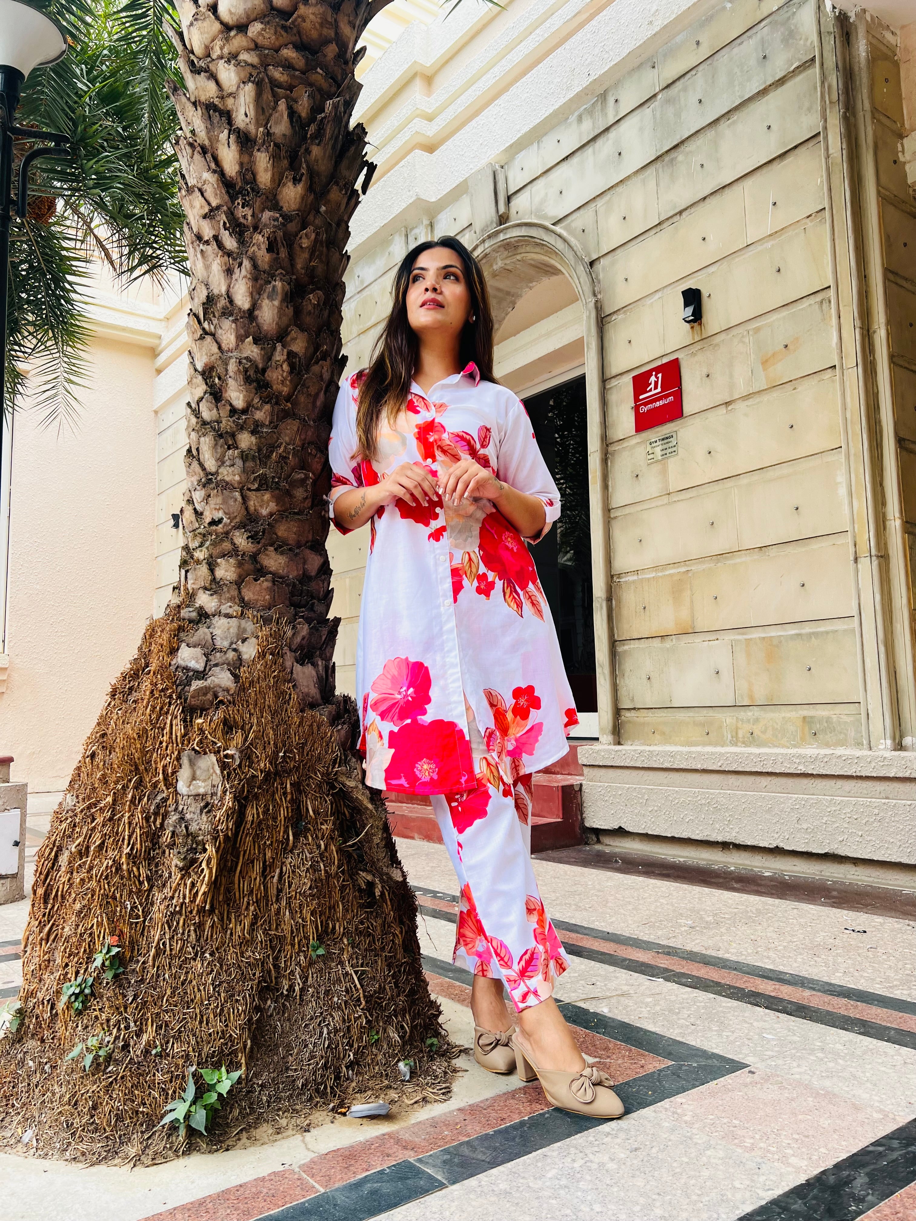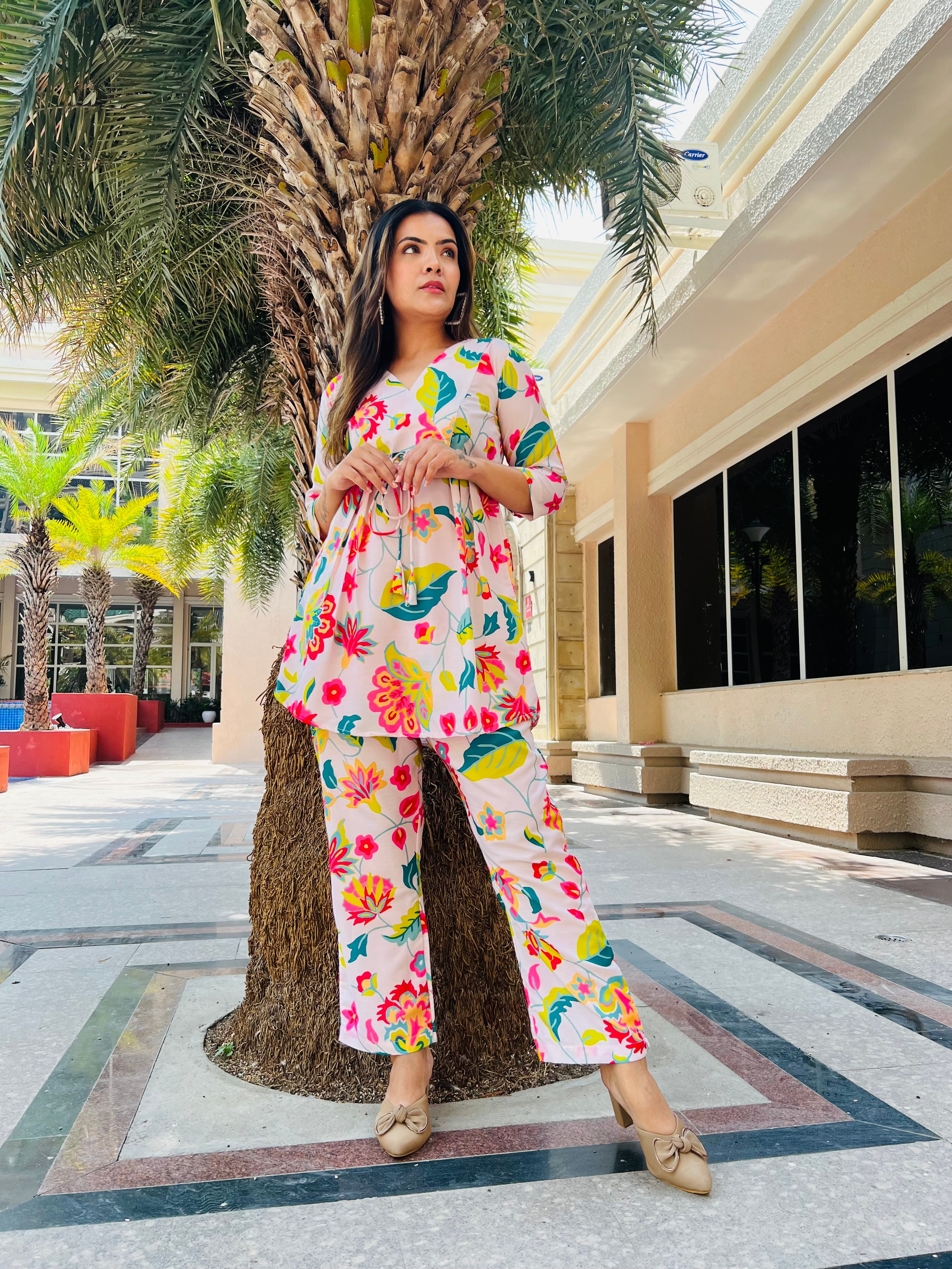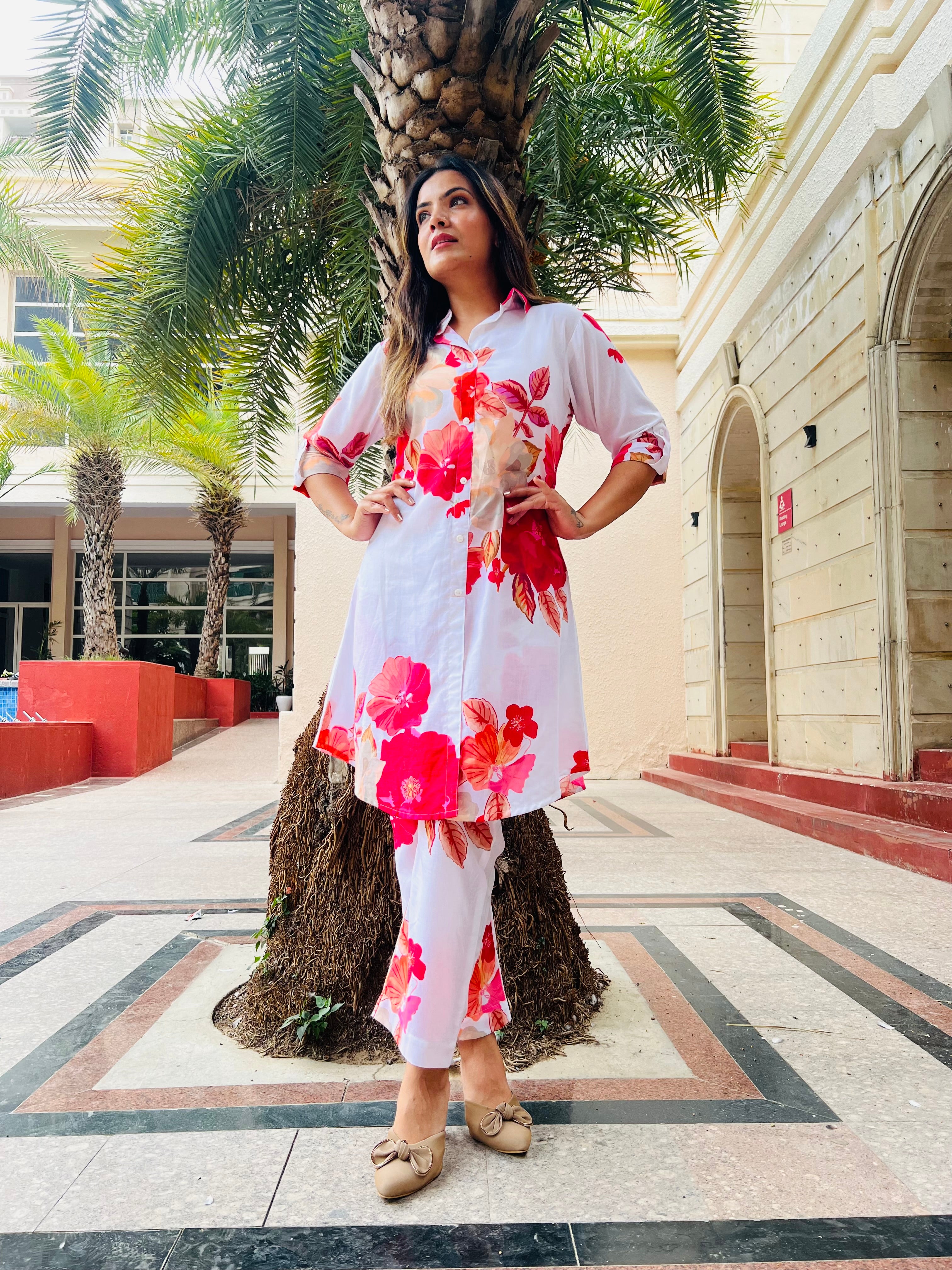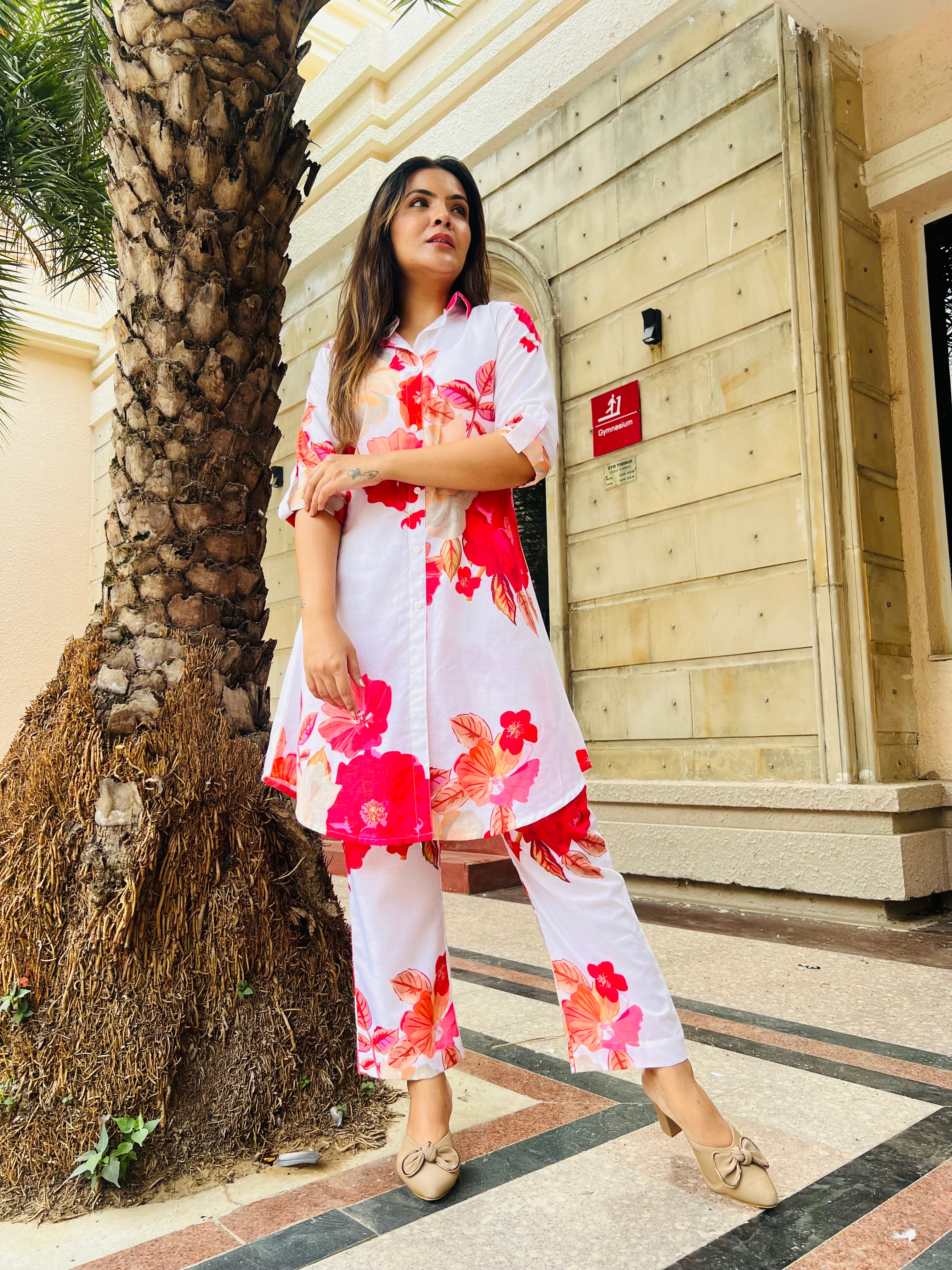 Floral trendy & classy women’s co-ord set with Pakistani style sleeves for office wear