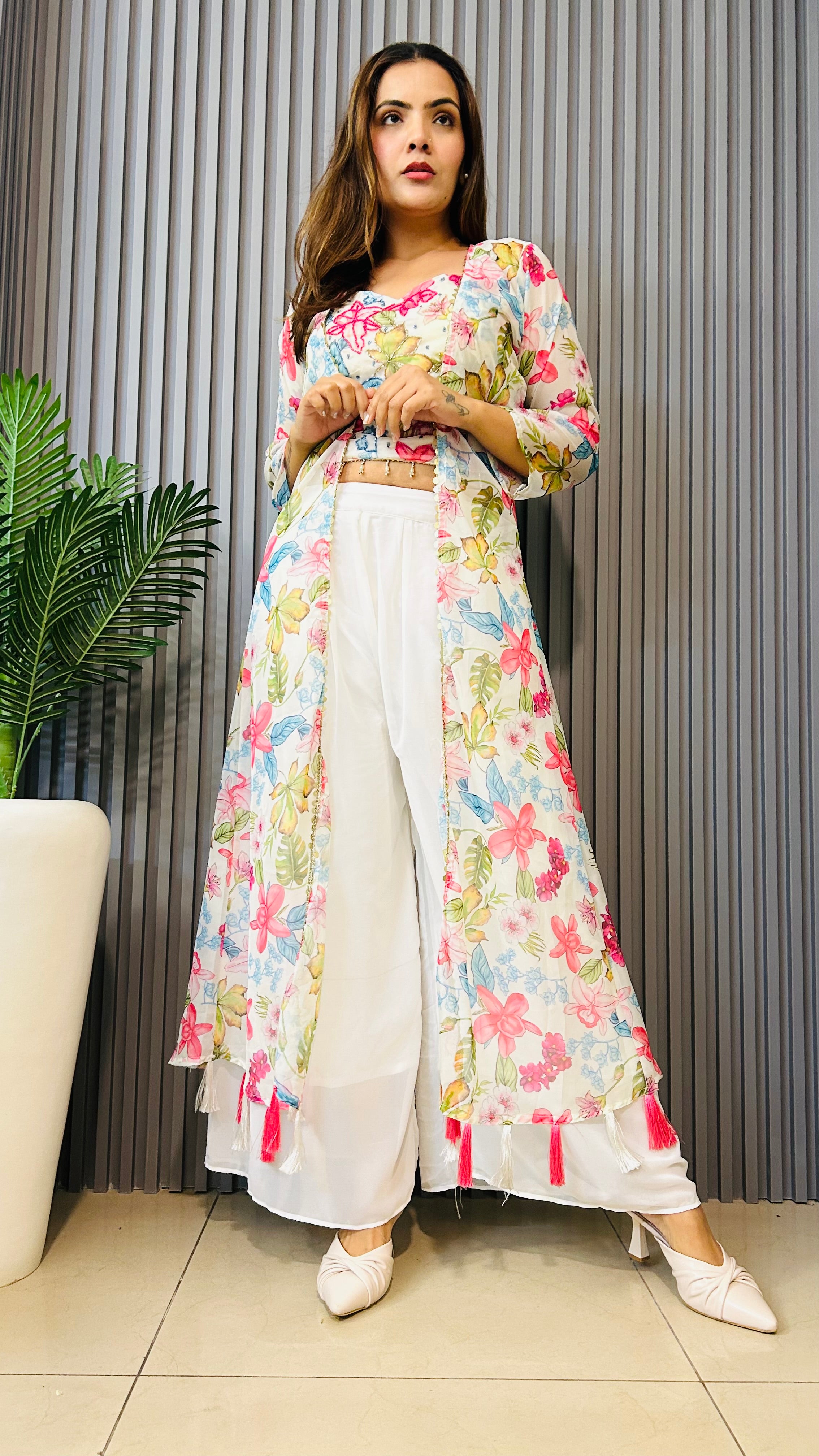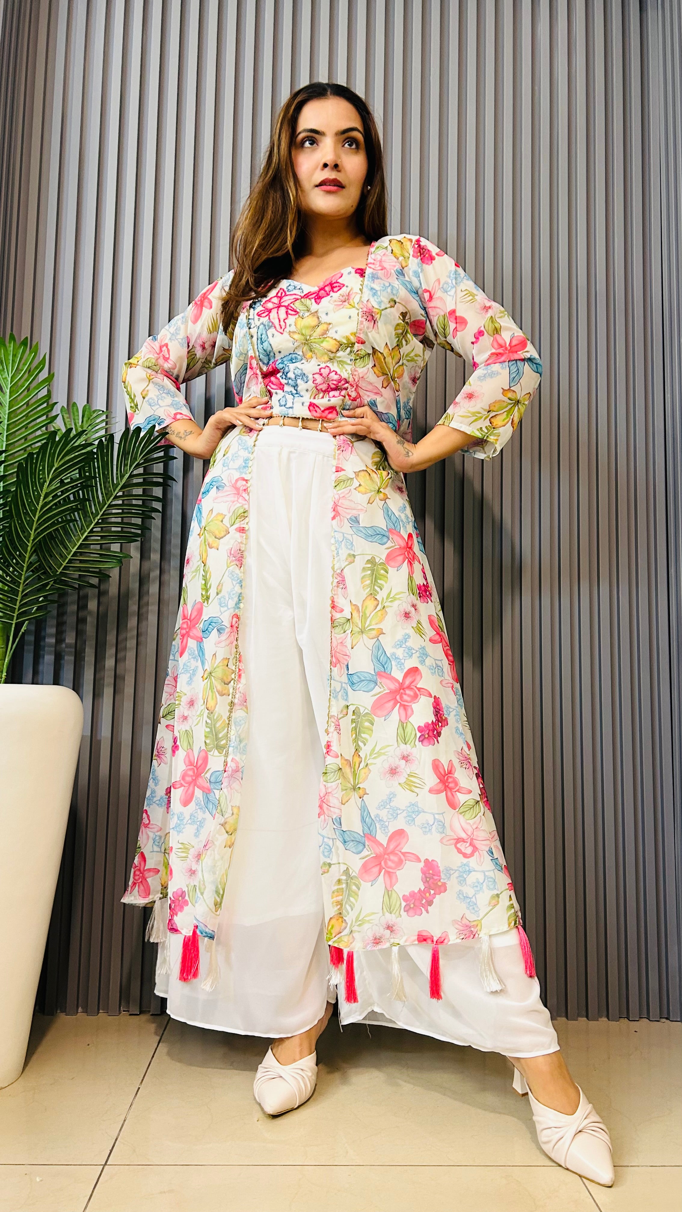 Multicolour 3pc Indowestern palazzo coordset